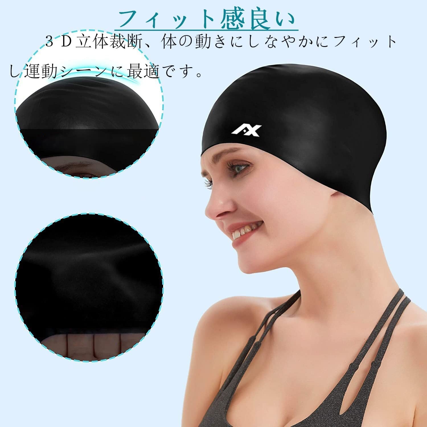AX スイミングキャップ 水泳キャップ スイムキャップ シリコン 大きめ 水泳帽子 長髪 ゆったりサイズ レディース メンズ