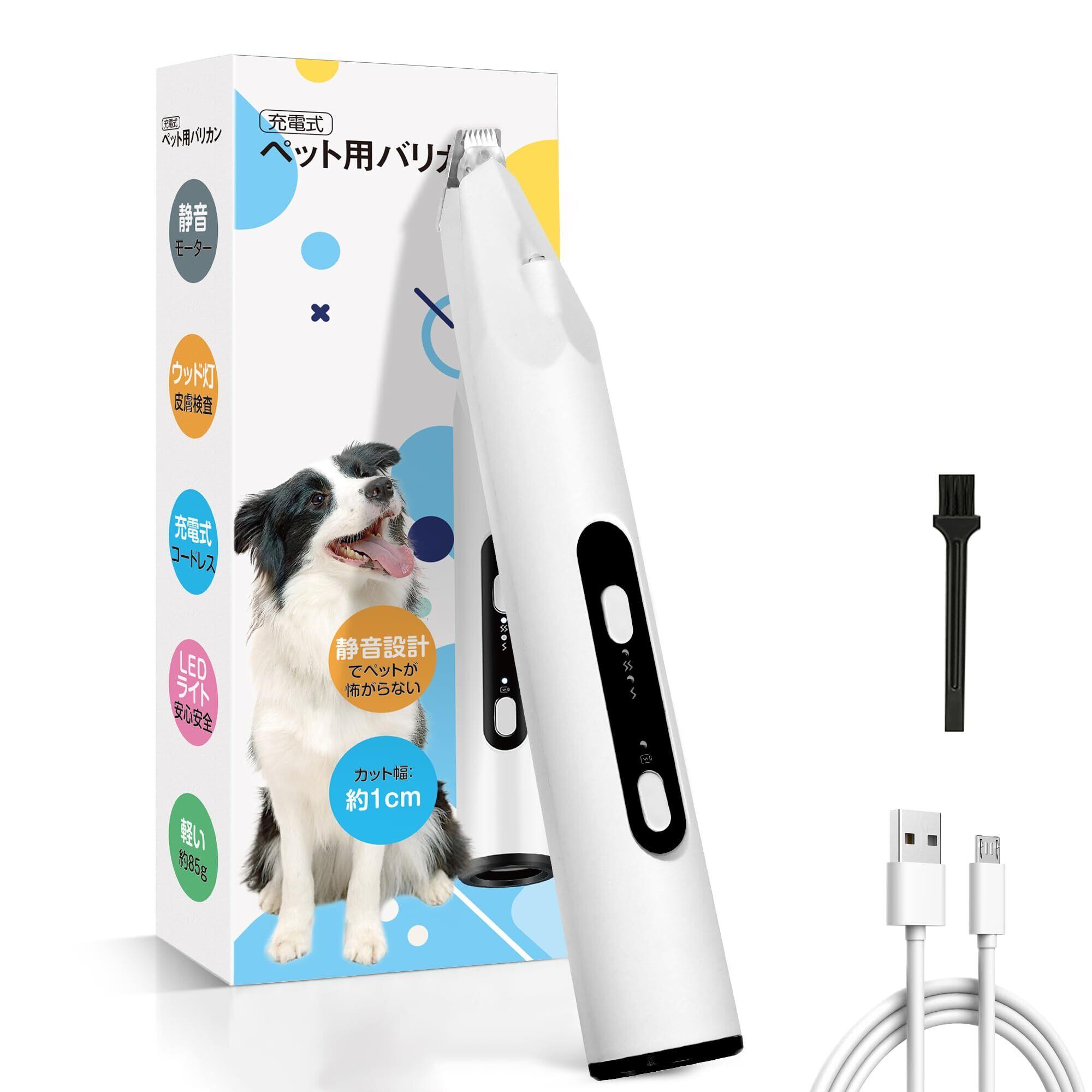 【操作簡単&自宅トリミング楽しめる】押すだけで、速度を切り替えられ、ウッド灯を照射でき、操作簡単です。小さい先端で、肉球、耳裏、顔周り、お尻周りなどの細かいところまでカットできます。自宅でトリミングを楽にするペット用部分カットバリカンです。セット内容:バリカン本体*1、USBケーブル*1、ブラシ*1、日本語取扱説明書*1。