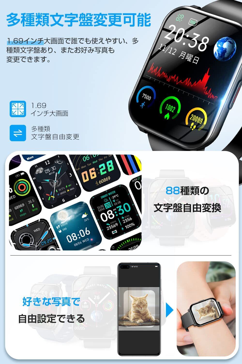 スマートウォッチ 24種運動モード 1.69インチ大画面 活動量計 140以上種類文字盤 smart watch 腕時計 歩数計 スポーツウォッチ メンズ レディース iphone対応 android対応 LINE通知 着信通知 メッセージ通知 音楽制御 多言語 目覚まし時計 IP67防水