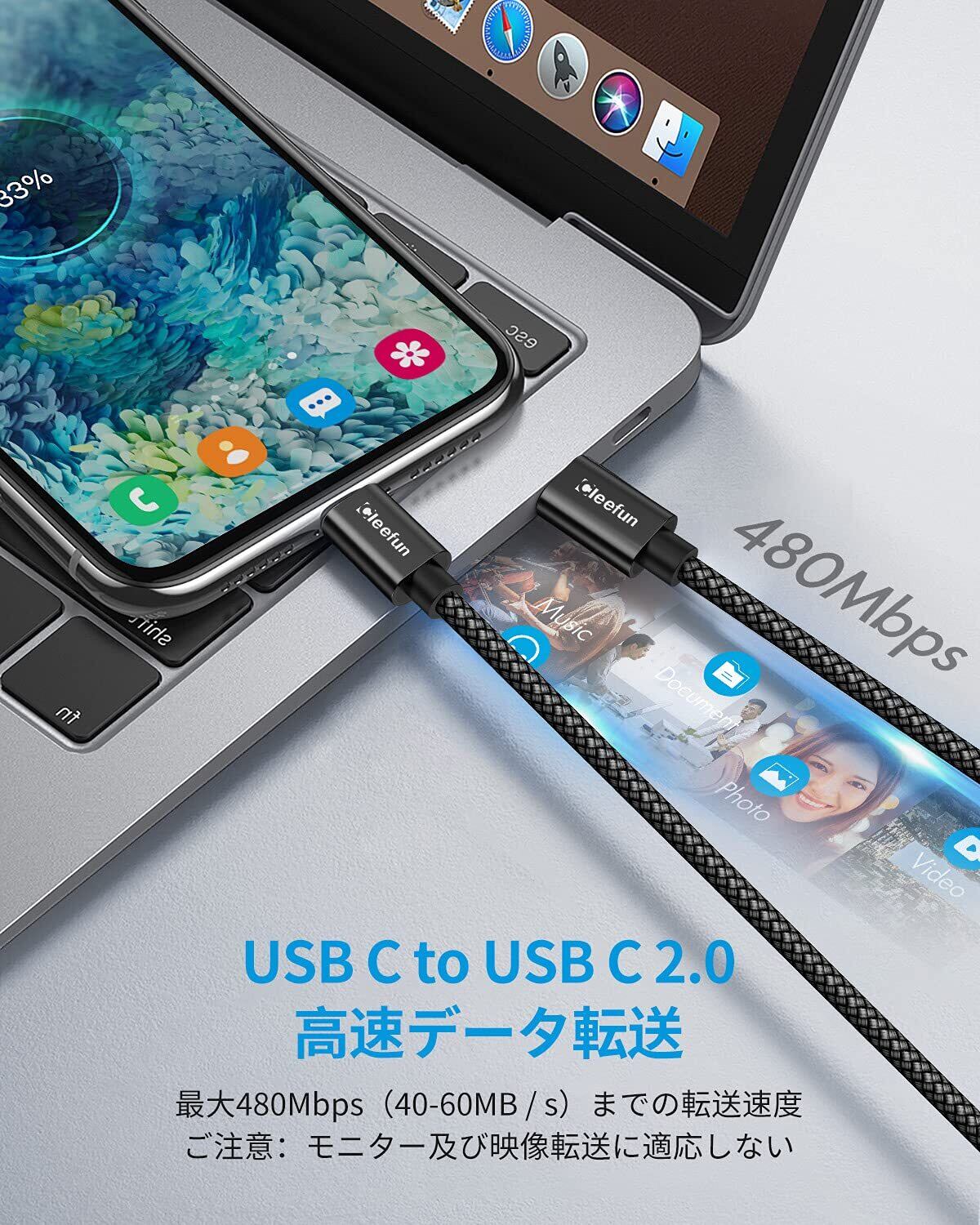 【60W高速充電に対応】このUSB Type c to Type c ケーブルはPD(Power-Delivery)対応により、最大60Wの高出力でスマートフォンやタブレットやノートPC等USB-Cポートのデバイスに安定且つ高速充電を実現できます。ご注意:PD急速充電を実現するために、モバイルデバイスとアダプタはPD機能をサポートする必要があります。