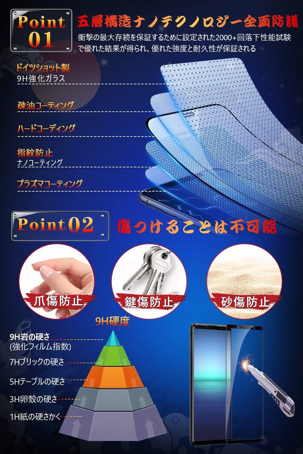 【ビ割れ防止!十倍強化極細黒縁】製品に高品質な爆発防止層を施し、傷や衝撃に強い、ガラスフィルムは破裂してもガラスの破片が飛び散らず、ガラスにこすられるリスクから体を守ります。特殊な焼き戻し強化と二次硬化技術により、極細黒縁の硬さと靱性を共に向上して十倍強化までやり遂げる。正面だけではなく、側面からの衝撃にも超強く、万が一端末をサイドや角から落としても、ガラスフィルムにありがちなヒビ割れを避ける。全方位からXperia 5 IIの画面をしっかりと保護できます。高精度加工の2.5Dラウンドエッジをしており、スマホの湾曲した部分にピッタリとフィットし、一体感のあるデザインとなっています。特殊な飛散防止設計により、万一割れてしまった際にもガラス片が飛散することなく、高い安全性を実現しています。長く安心して使えます。