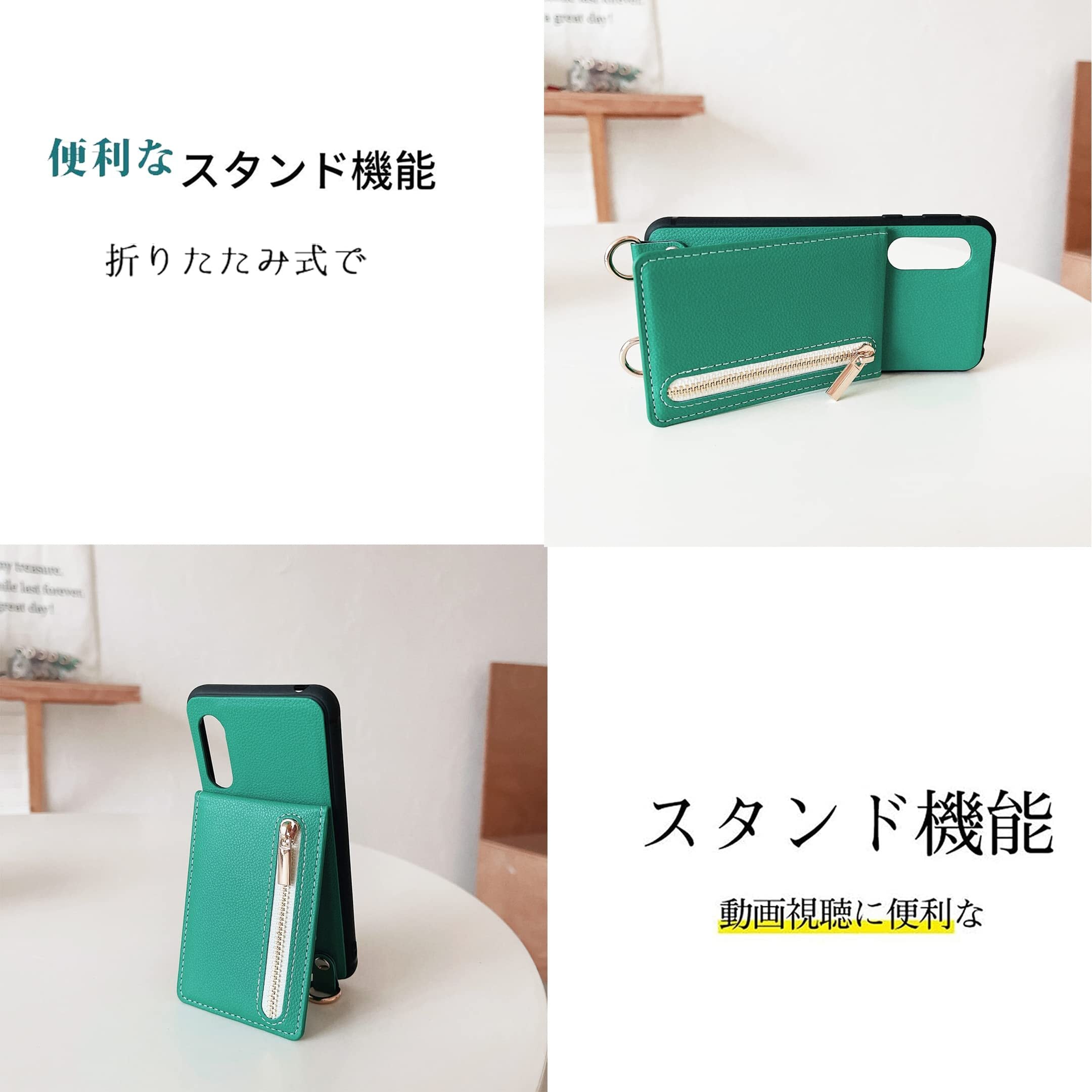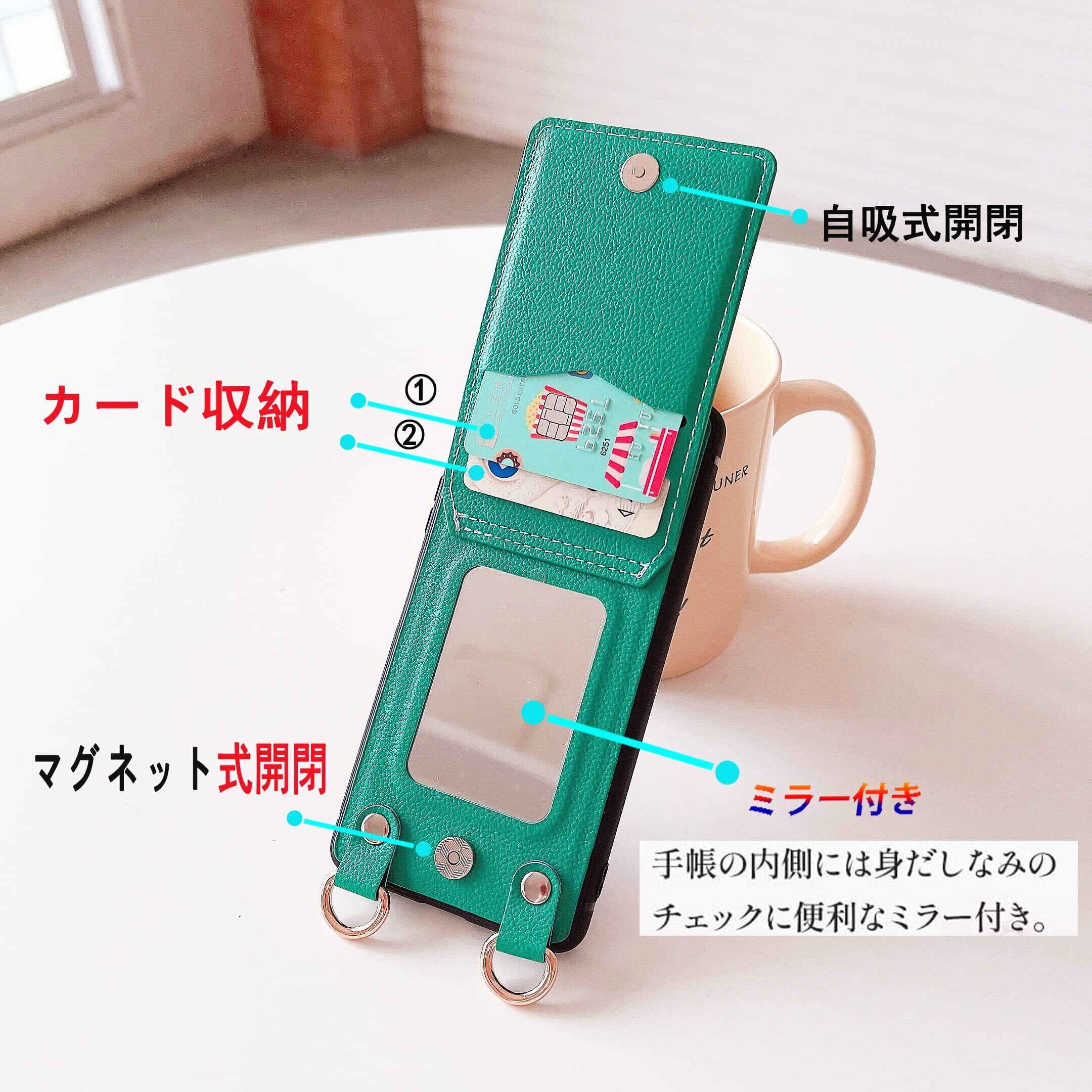 AQUOS Sense3 ケース 高質レザー Sense3 Lite ケース Sense3 カバー 肩掛け 首かけ 斜めがけ SH-02M ケース ショルダー ミラーケース SHV45 ケース 便利 カードポケット スタンド機能 落ち着いた色 調節可能 軽量 多機能 縦置き ICカード収納 財布型 耐衝撃 携帯 鏡付き ケース グリーン