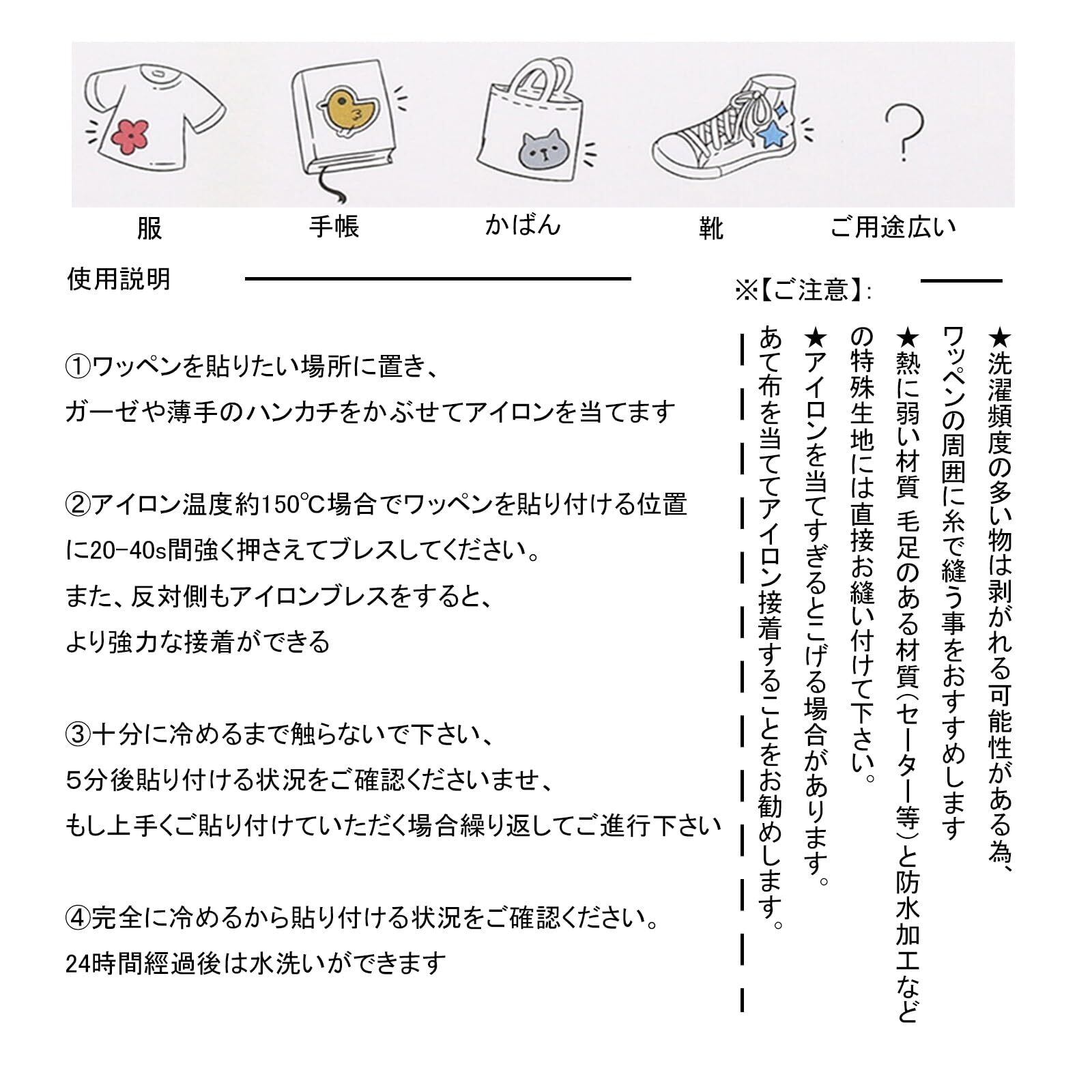 【アイロン不要】裏はシールタイプので、アイロンない場合は裏にフィルムをはがしてそのまま貼ってもできます、洗濯頻度の多い物は剥がれる可能性がある為、ワッペンの周囲に糸で縫う事をおすすめします
