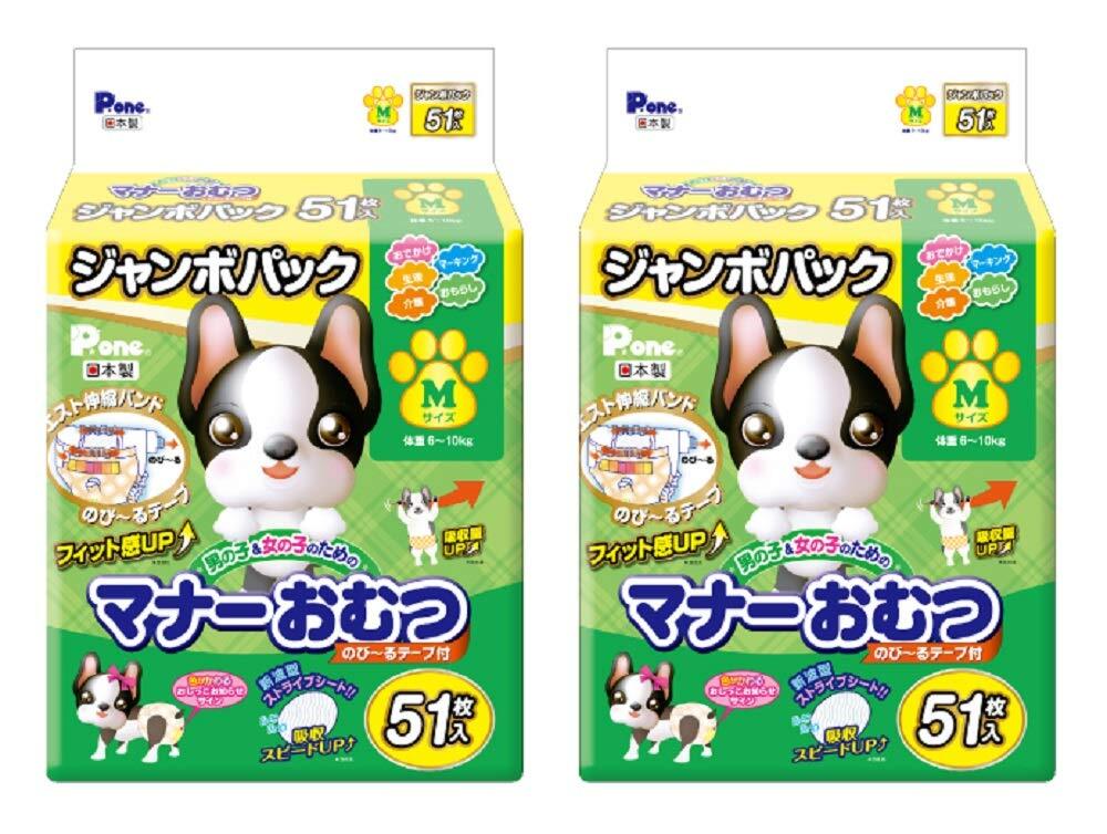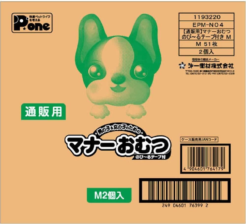 P.one 通販用 男の子&女の子のためのマナーおむつ のび~るテープ付き ペット用 Mサイズ 51枚入×2個 (ケース販売)