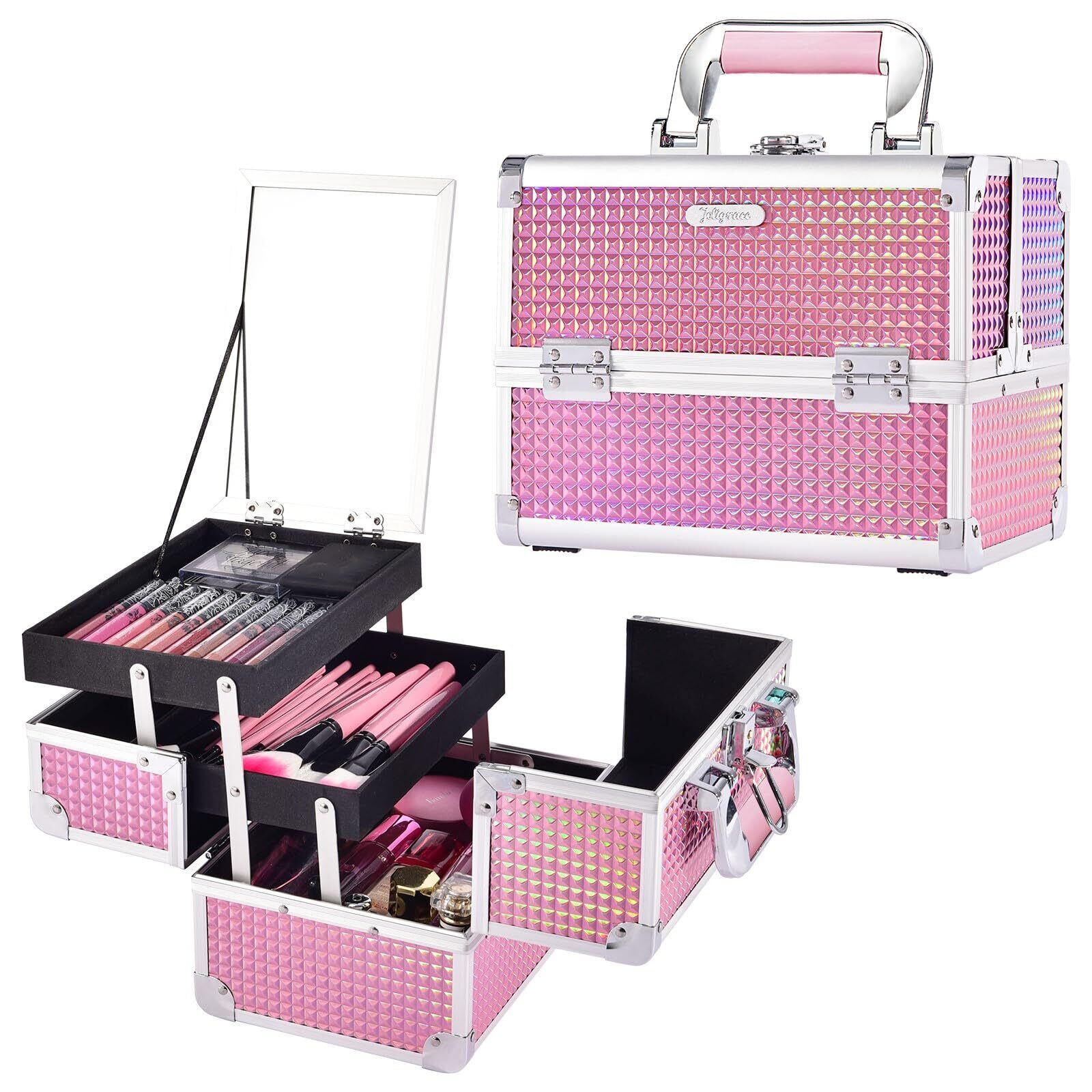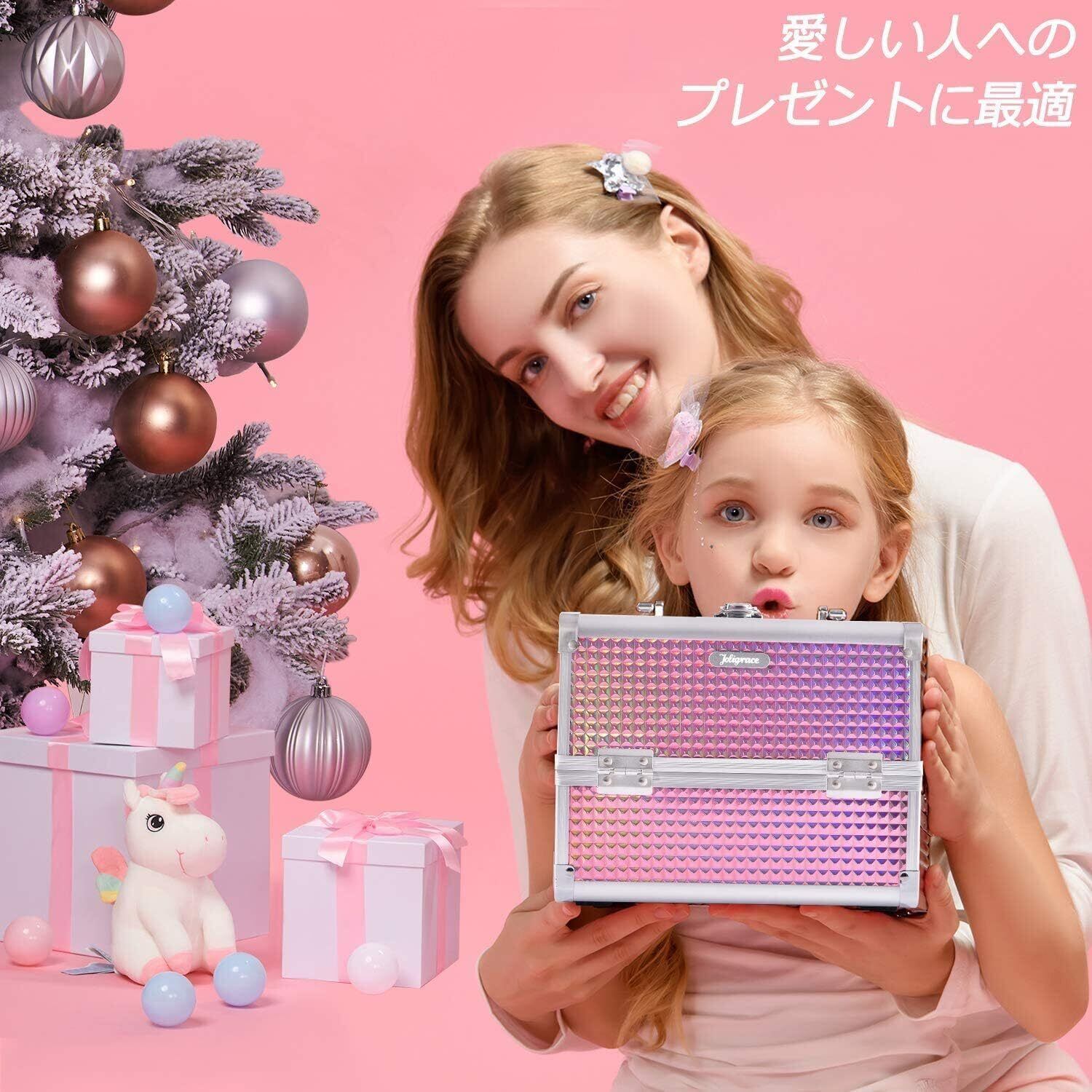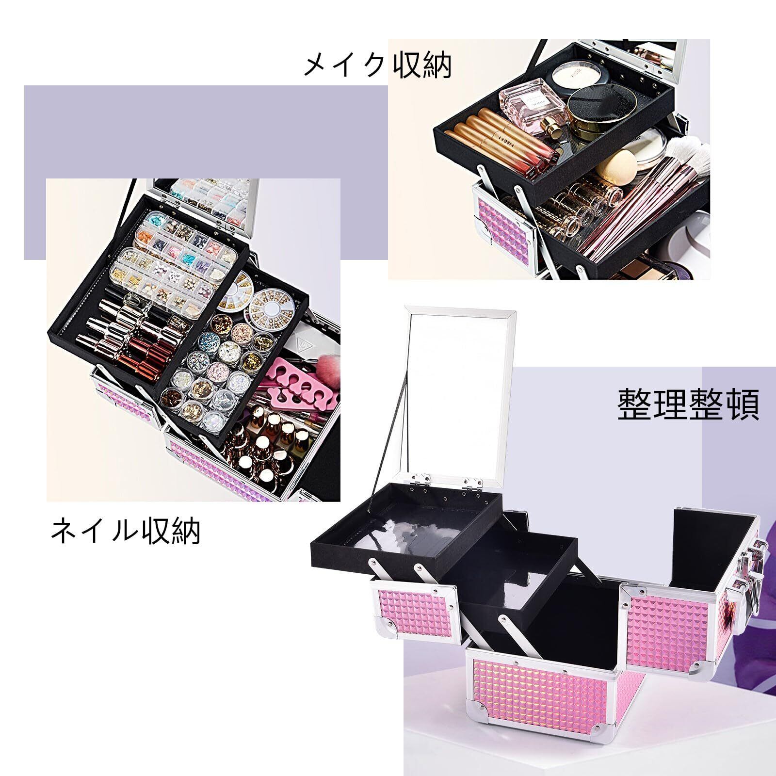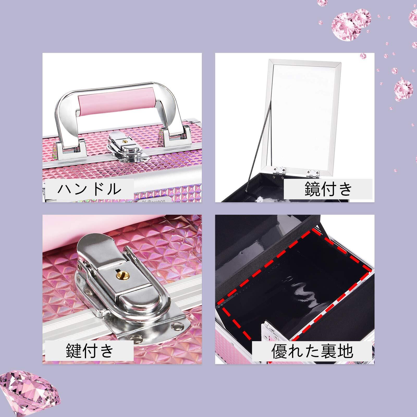 Hapilife メイクボックス 鏡付き コスメボックス プロ用 化粧箱 化粧ボックス 化粧品収納ボックス 大容量 ネイル収納 メイク道具 鍵付きボックス クリスマスプレゼント(ピンク)