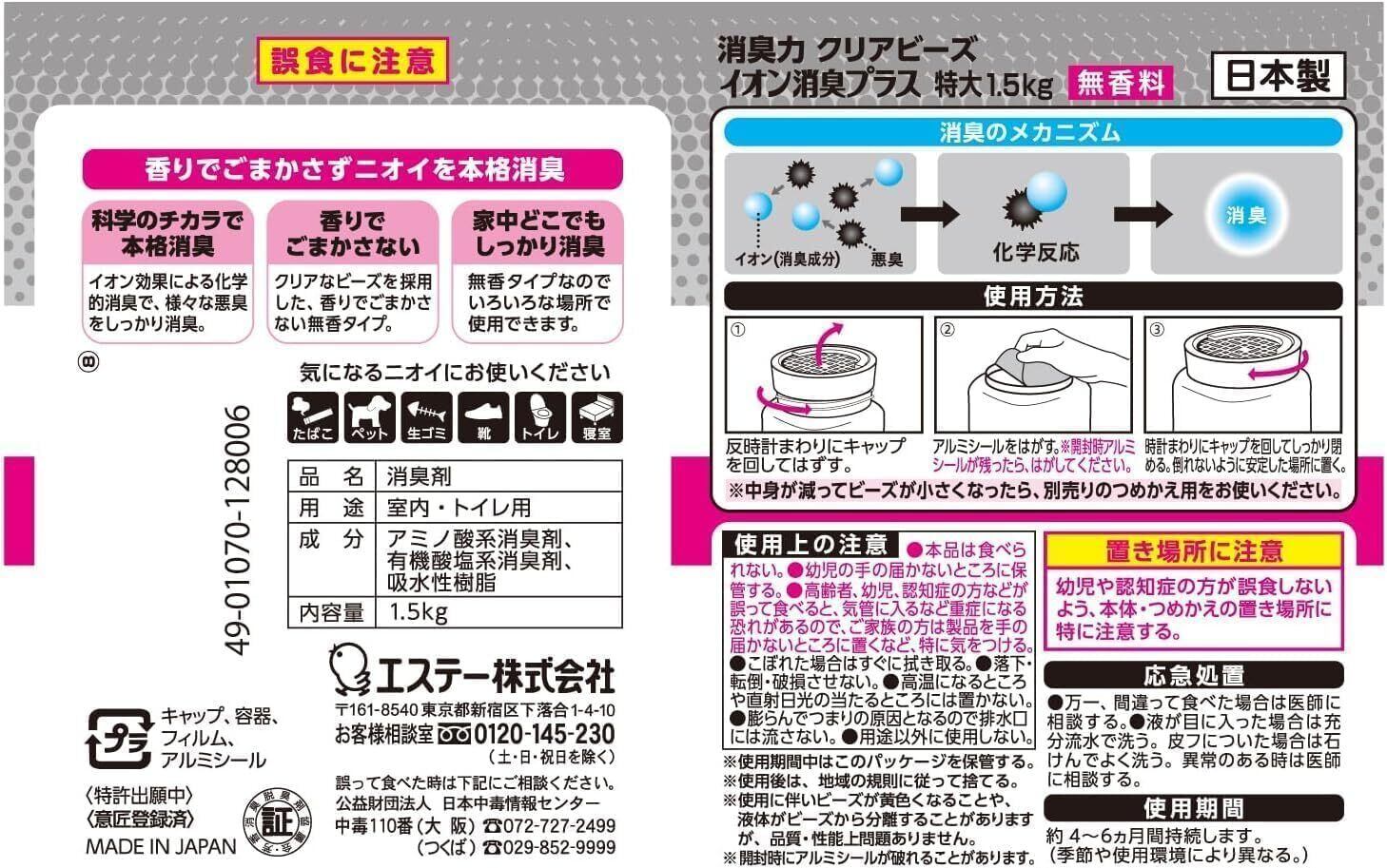 消臭力 イオン消臭プラス 消臭ビーズ 部屋 トイレ用 置き型 無香料 特大 本体 1.5kg クリアビーズ 部屋用 玄関 リビング キッチン トイレ たばこ 消臭剤 消臭 芳香剤