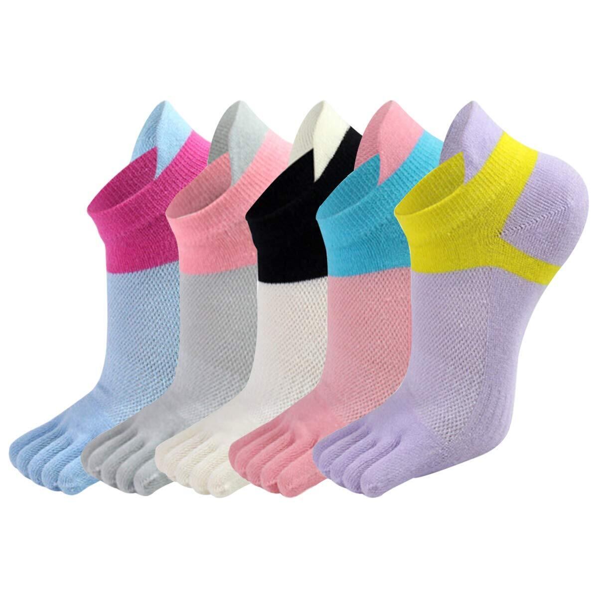 [DAMILY] 靴下 五本指ソックス レディース 春夏用 スニーカー くるぶし靴下 女性 スポーツ用 ランニングソックス ショート丈 綿 カジュアル コットン くつ下 おしゃれ 蒸れない 5本指靴下 カラフル 5足セット 22-25cm