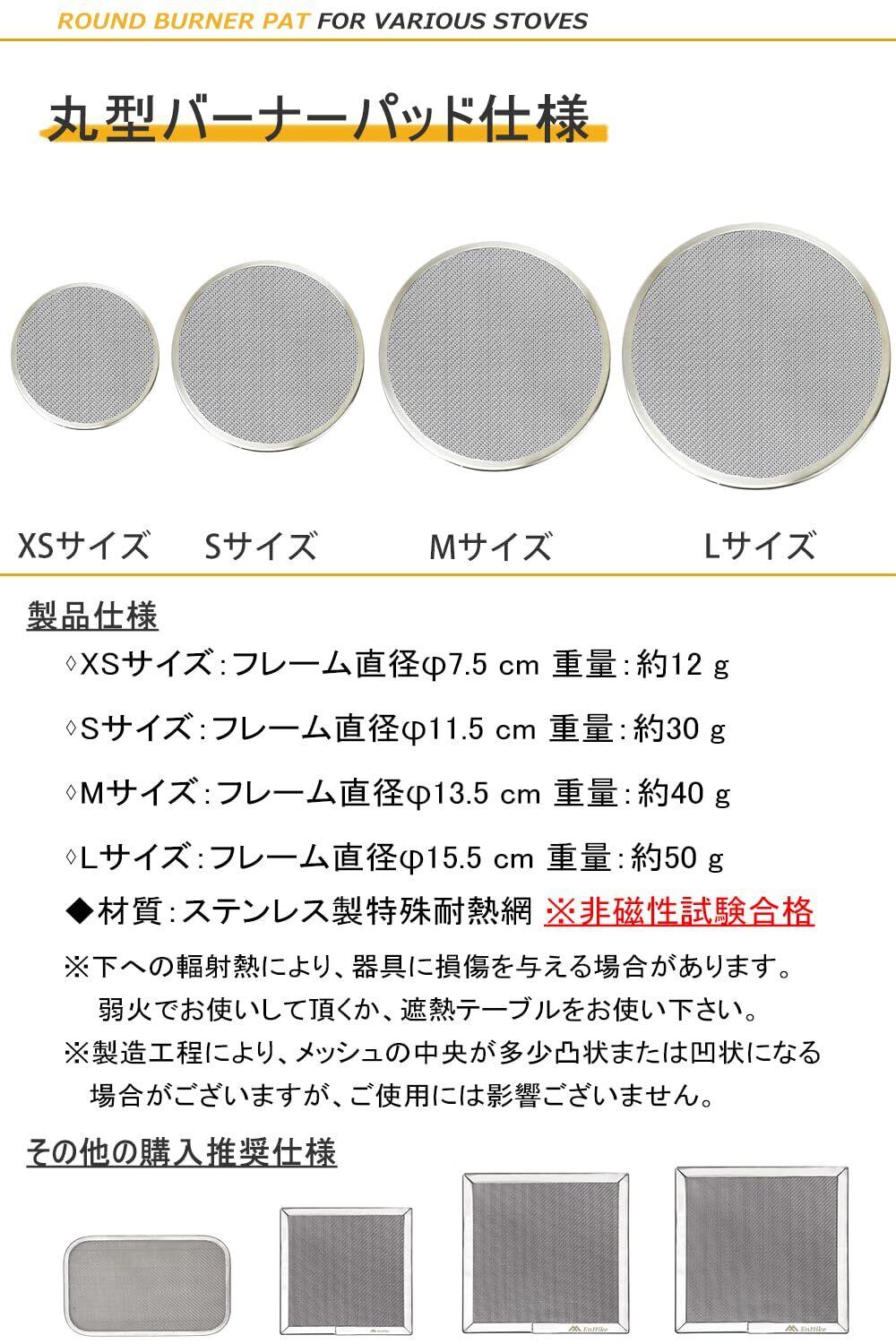 【輻射熱を均等に】バーナーパットはクッカーへの加熱をもっと均等と安定にします。特に火加減の調整が難しいバーナーや材質の薄いクッカーには最適です。バーナーの燃焼率と燃料の利用率を向上させます。各種シングルバーナーや、薪ストーブ、アルコールストーブ、ポケットストーブなどのストーブで広く使用されています。また、メッシュ網自体が加熱されると遠赤外線を発生させるので寒い時はパットに火を当てることで暖かい遠赤外線ヒーターにもなります