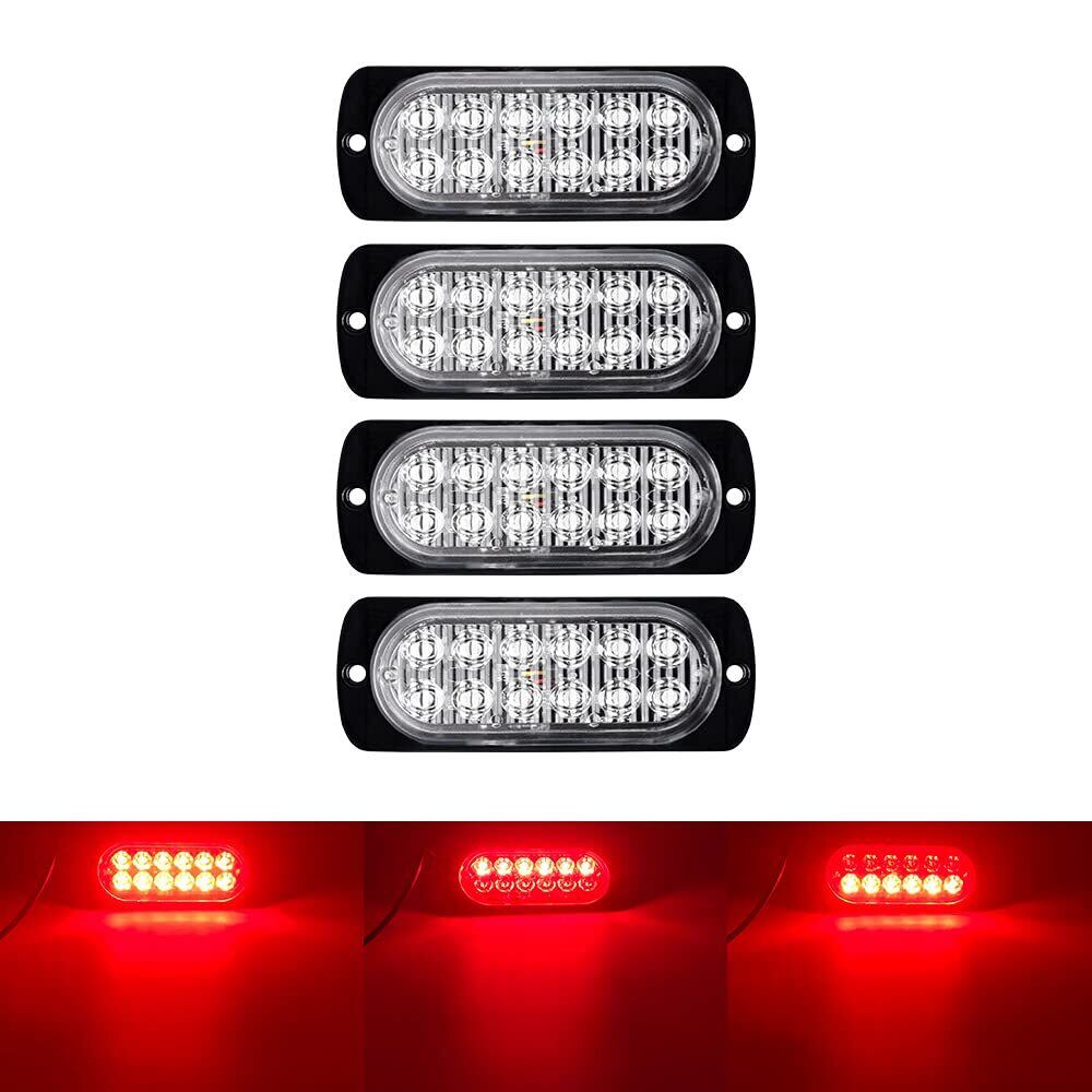 Catland ストロボライト LED ストロボ機能付き 警告灯 レッド 超薄型 サイドマーカー マーカー グリルマーカー ディライト 赤 トラックマーカー 非常灯 緊急用ランプ 点滅 バイク 自動車 乗用車 トラック トレーラー 12V 24V 車 汎用 IP67防水 4本入り