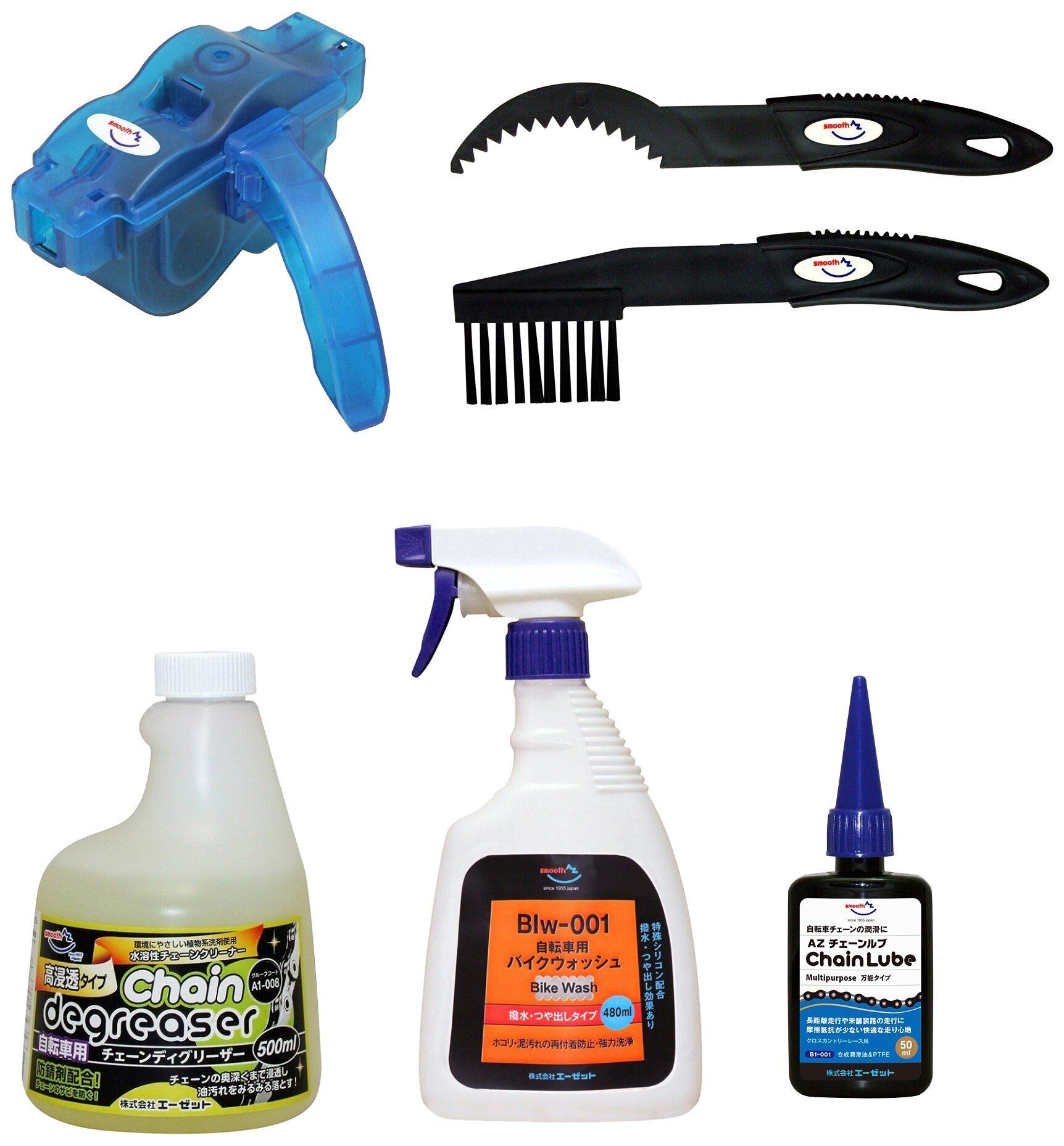 AZ(エーゼット) 自転車オールメンテナンス5点セット[B1-001 自転車用チェーンルブ マルチパーパス50ml+A1-008 チェーンディグリーザー高浸透 付替 500ml+チェーン洗浄器+ギアクリーニングブラシ+BIw-001 バイクウォッシュ480ml] SF065