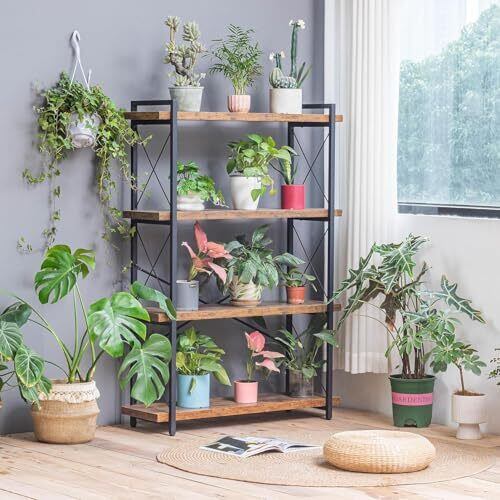 HCHQHS オープンラック オープンシェルフ 4段 幅90 木製 収納 棚 おしゃれ 本棚 オープンラック キッチンラック リビングラック 木目調 組立簡単 古木色
