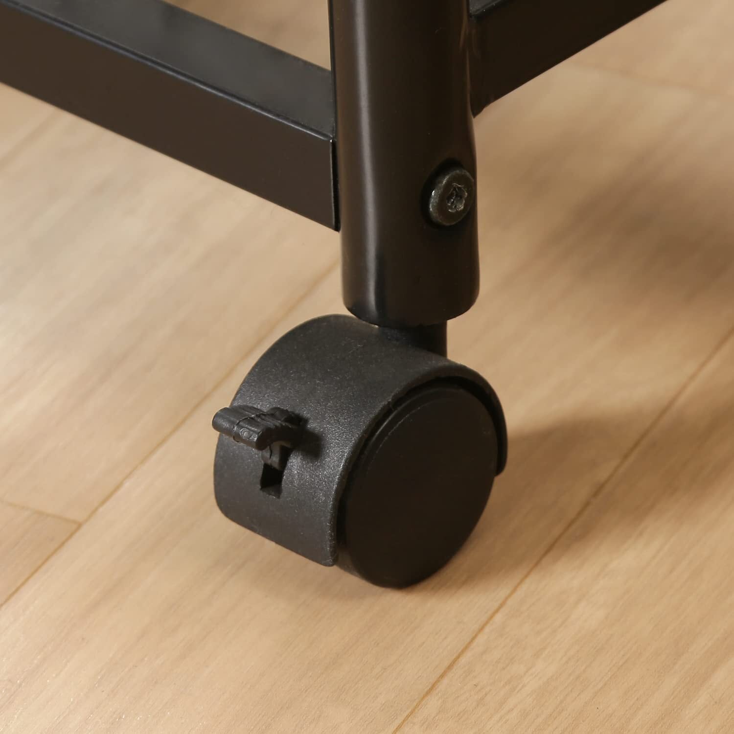 不二貿易 レンジ台 キッチンラック 幅60×奥行46×高さ103.5cm ブラック ブラウン スライド棚 収納 レンジワゴン キャスター付き 14638