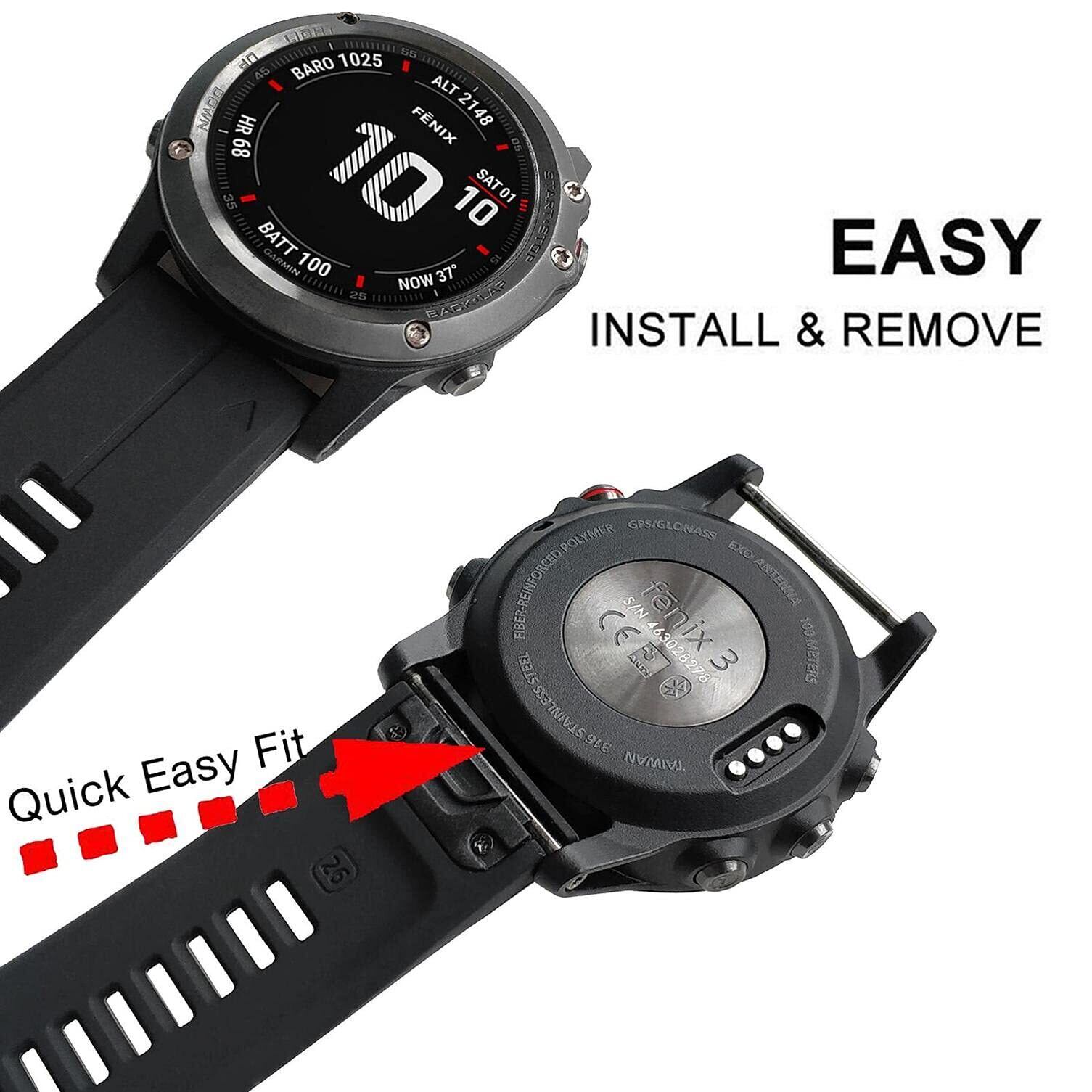 【対応機種】Garminスマートウォッチの背面にマークされているモデルを確認してください。QuickFit 26mmストラップはQuickFit 26mmストラップは、 Fenix 7X Sapphire Solar / Fenix 7X Solar, Enduro / Enduro 2, Tactix 7 Pro, Fenix 6X Pro/Fenix 6X Sapphire、 Fenix 5X /Fenix 5X Plus、Tactix Delta/Tactix Charlie/Tactix Bravo、Quatix 3、Fenix 3 / Fenix 3 HR,D2 Charlie / D2 Delta PX,Descent Mk2i / Descent Mk2 / Descent Mk1