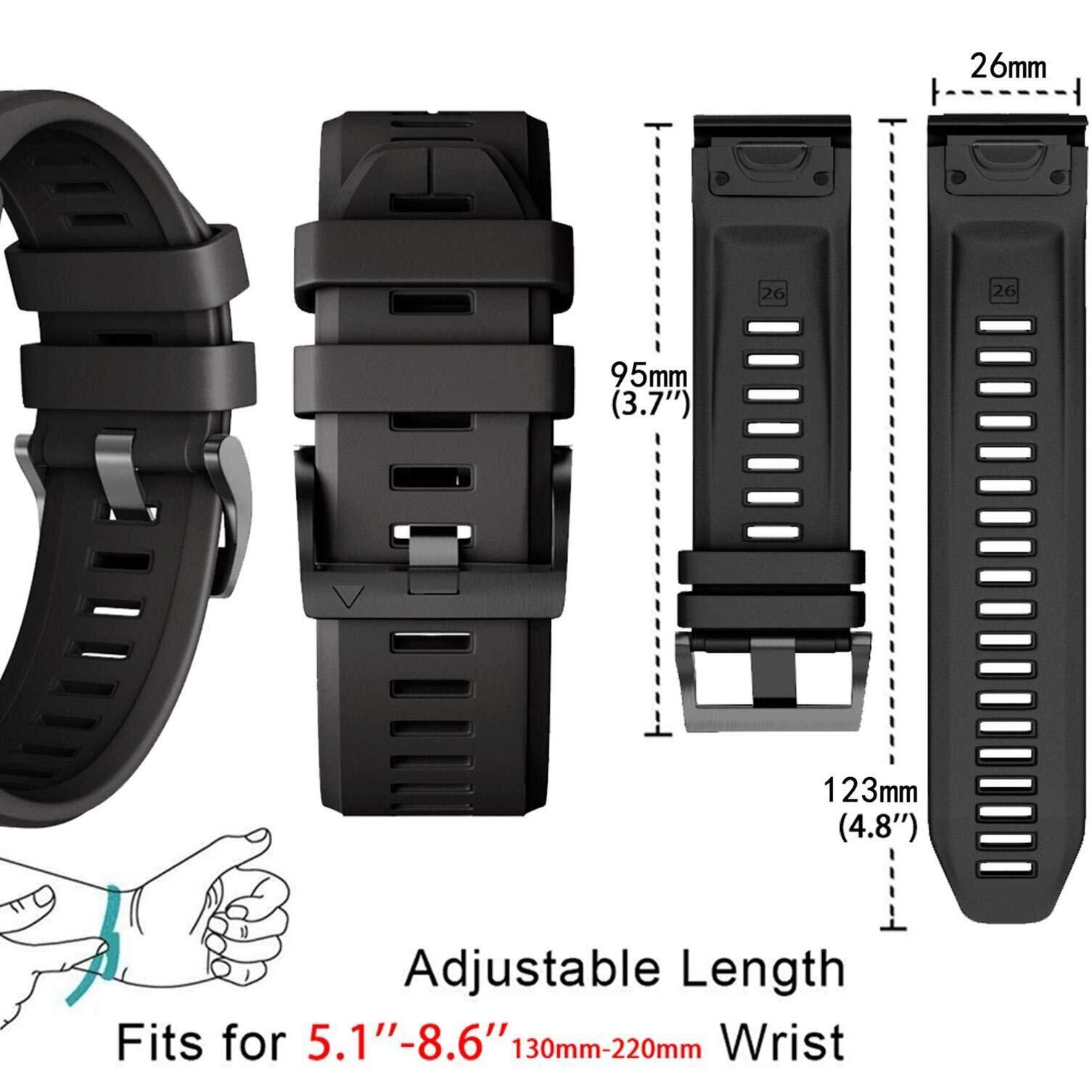AHayo QuickFit 26mm 2パック防水替えバンド for GARMIN(ガーミン) Fenix 6X 留め金具の シリコン スポーツ のあるストラップ 対応GARMIN(ガーミン) Fenix 5X / Tactix Delta/Fenix 3 / Enduro (黒と緑)