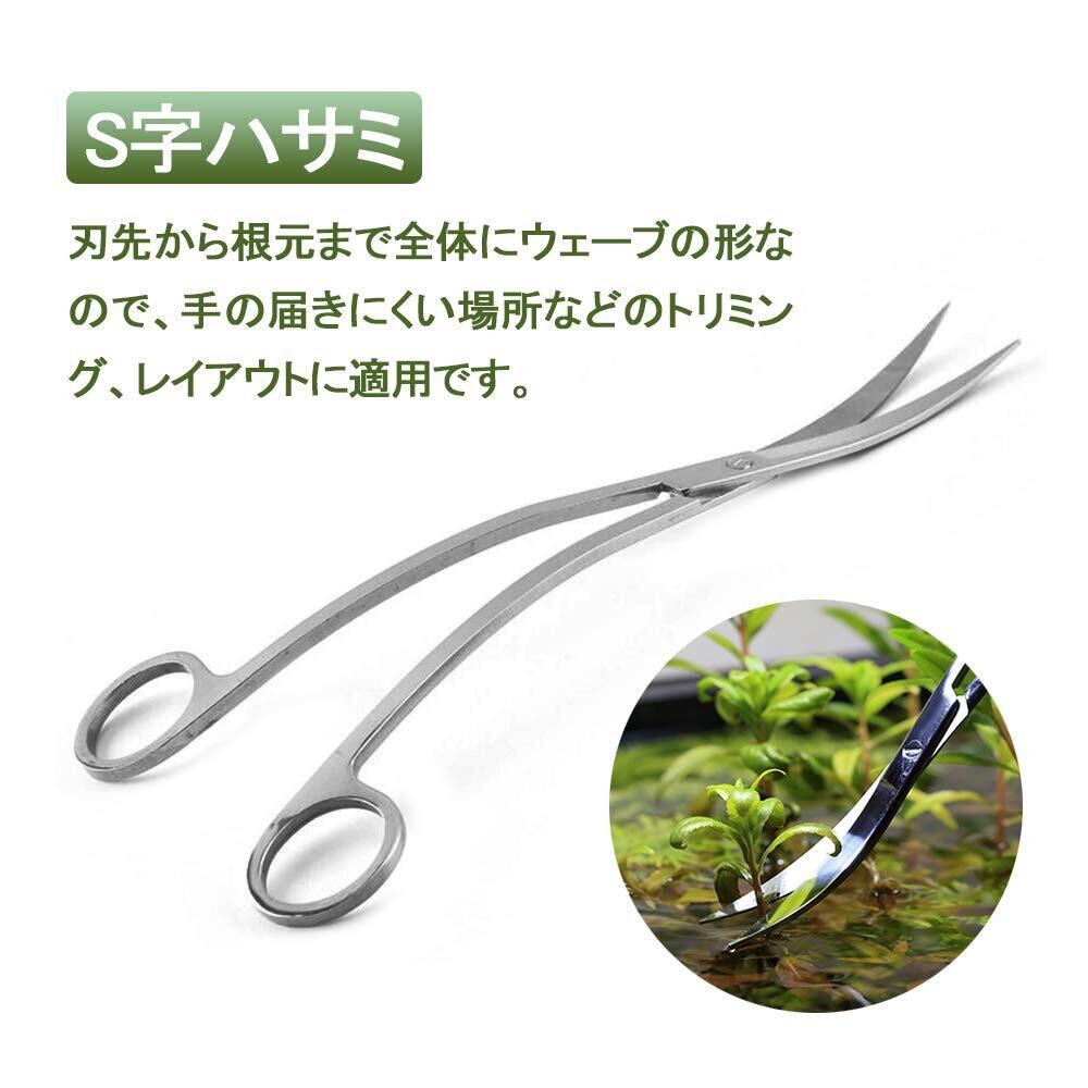 【S字ハサミ】水草の処理や、繁茂した有茎草などの水草をトリミングします。特殊形状で、刃先がしっかり水草の剪定ポイントまで届きます。