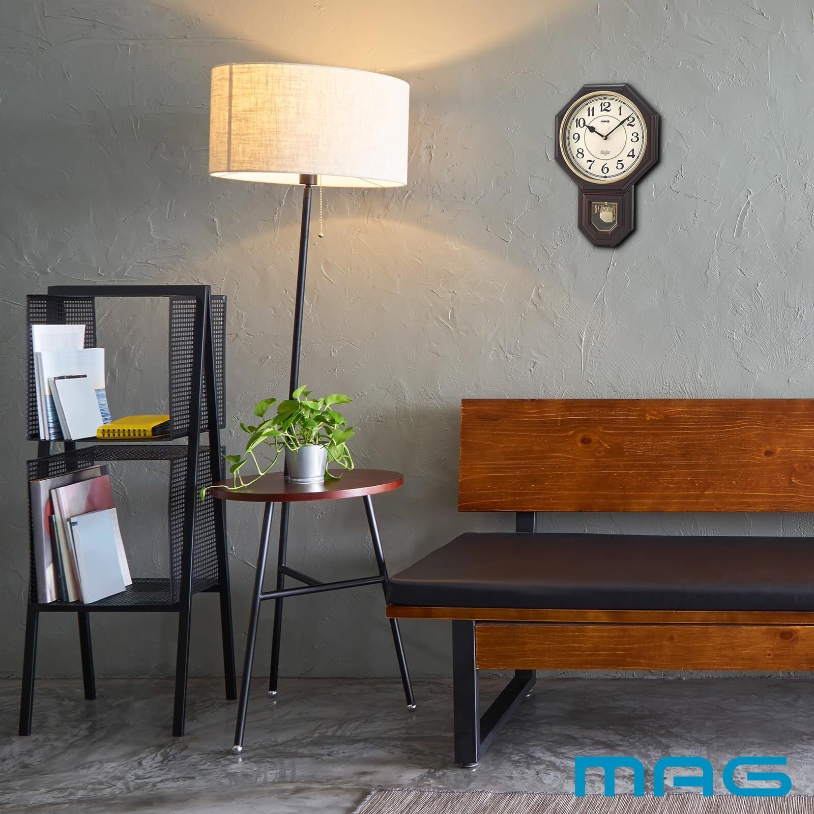 MAG(マグ) 掛け時計 振り子 アナログ 西洋館 静音 連続秒針 メロディ 報時機能付き ブラウン W-670BR