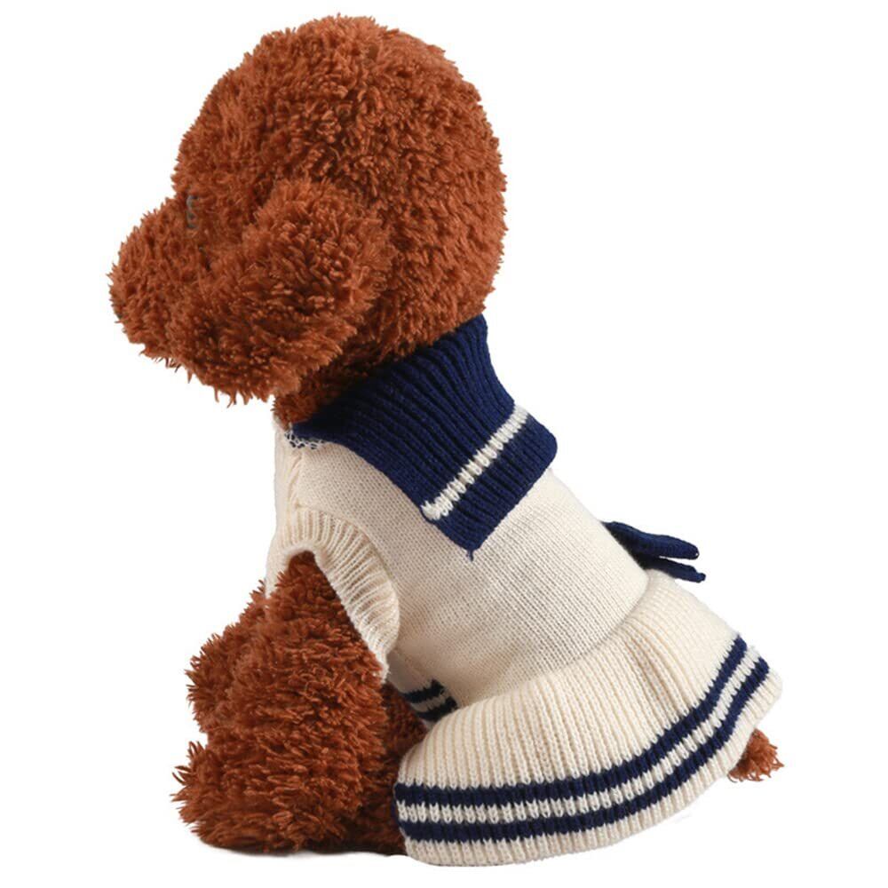 YOASONEK ペット服 かわいい ドレス 犬 服 ワンピース 秋冬 スカート 犬猫用 ニット セーター オシャレ 可愛い 小型犬 中型犬 お姫様 犬洋服 お散歩お出かけ ドッグウェア 記念撮影 誕生日 クリスマス 猫服 女の子 防寒 (S, ブルー)