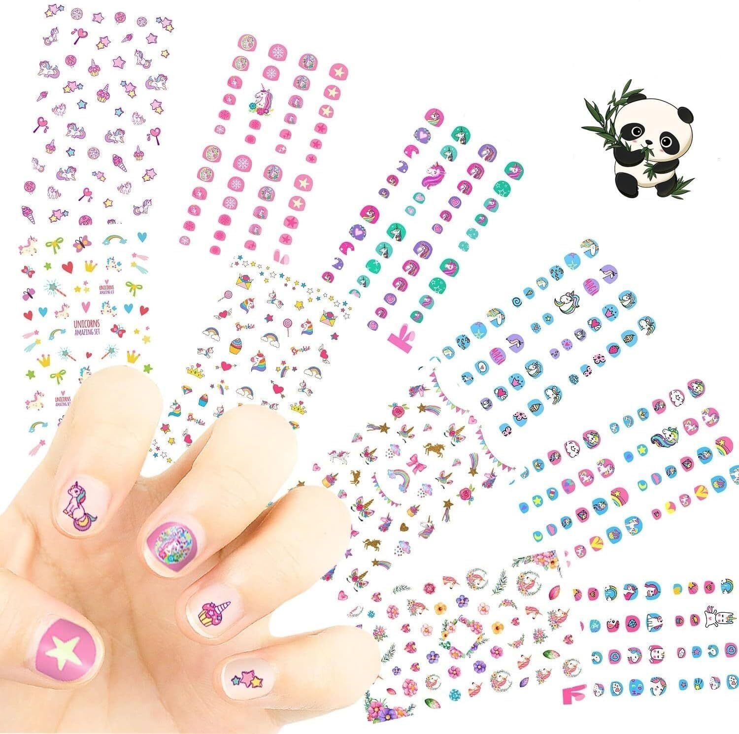 ネイルシールこども かわいい ユニコーン花柄 10枚と1枚 パンダのタトゥーシール、3D貼るだけマニキュアセット キャラクターデザイン 子供ネイルステッカー 選べる400種類、レインボーユニコーン・星・王女・花ネイルパターン 極薄 重ね貼り 褒美シール 誕生日パーティー文化祭 学园祭用