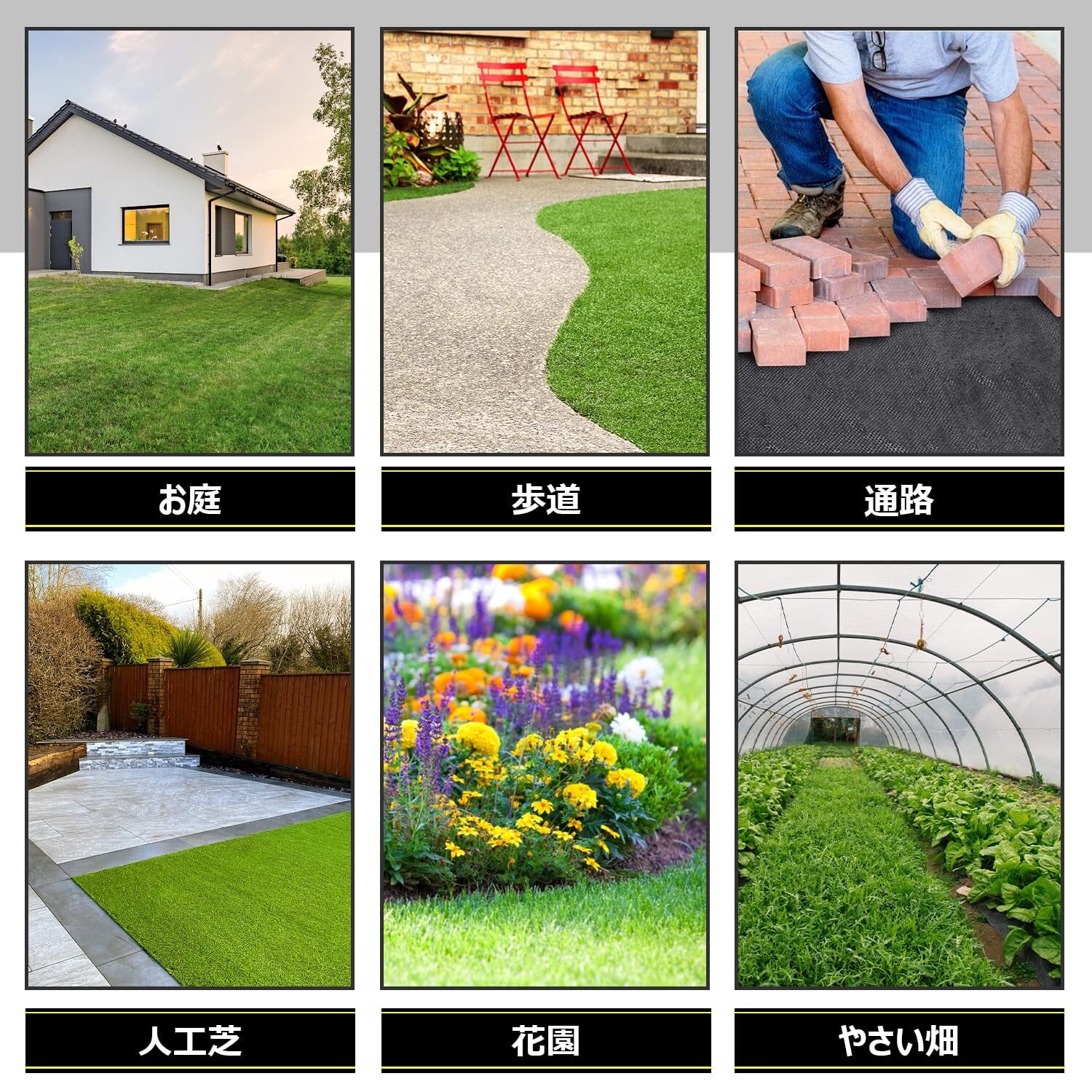 【耐久性アップ】高密度100g/m²の高品質ポリプロピレン(UV耐候剤配合)を使用し、従来の除草シートに比べて厚みがあり、破れにくいです。最大5年間ご利用できます。