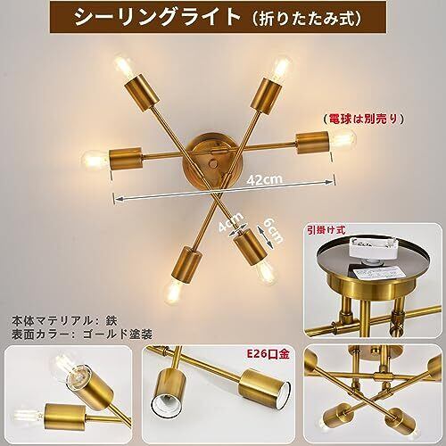 ペンダントライト 6灯 北欧風 ペンダントライト 現代工業風 ペンダントライト アンティーク レトロ ペンダントライト 天井照明 吊り下げ電球 おしゃれ ダイニング照明 食卓用 リビング 居間用 LED対応 6畳 8畳 E26口金(電球別売り)工事不要 引掛け式·ゴールド