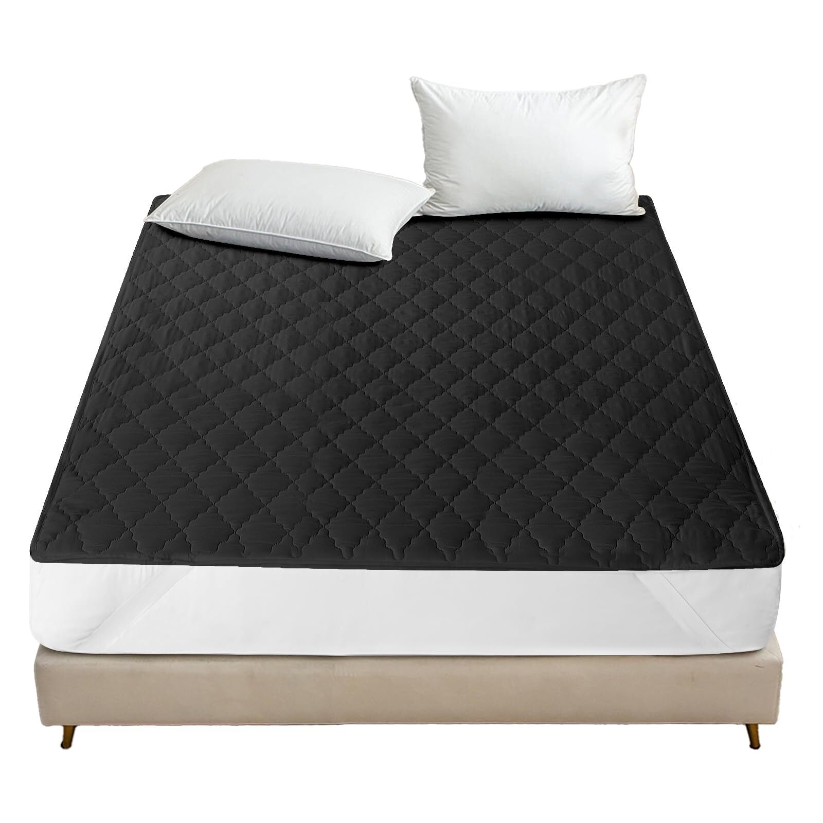 Mafudoxi 防水 敷きパッド シングル 防水パッド ベッドパッド 敷パッド マットレスパッド ベッドシーツ ベッドマット 敷きカバー マットレスカバー マットレス 抗菌・防臭・防ダニ 通気性 毛玉なし 洗える ホコリ出ない 四隅強化ゴムバンド付き オールシーズンで使える (シングル・100X200cm・ブラック)