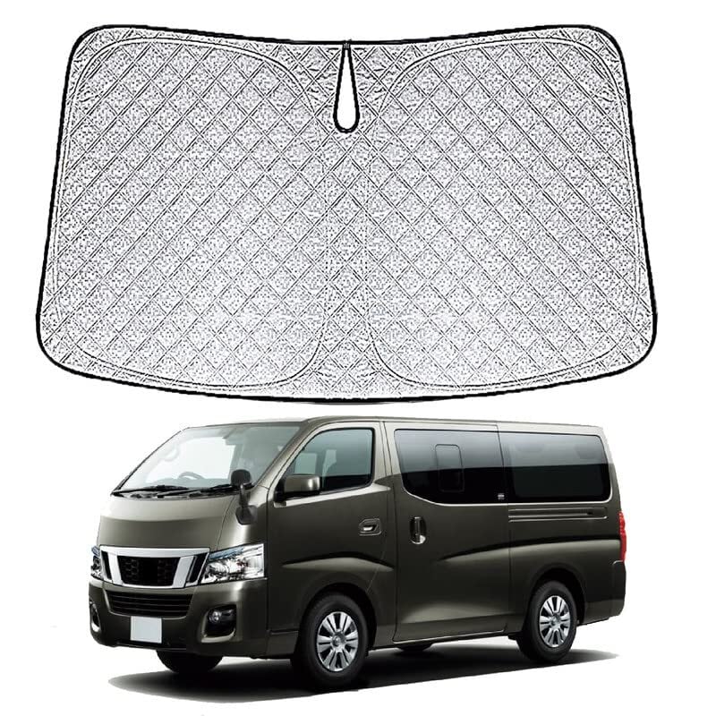 日産 NV350 キャラバン 5代目 E26型 専用サンシェード 車 フロント 2012.6~現行 Nissan NV350 CARAVAN E26 ニッサンフロントガラス用 UVカット 日よけ 車中泊 遮光 断熱 折り畳み式 アクセサリー キャラバン サンシェード カスタム キャラバンNV350 内装パーツ(シルバー, NV350 キャラバン E26型 厚い6層)