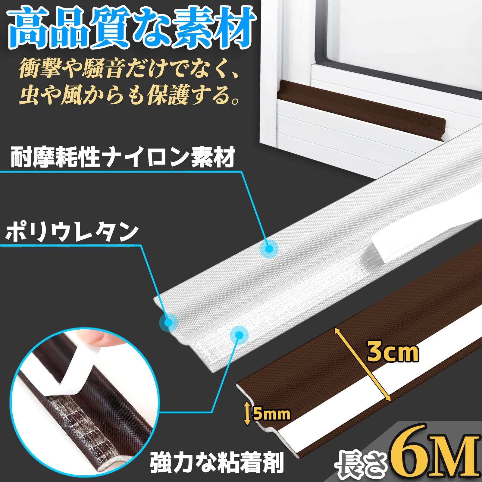 Goreson 防音 窓 隙間テープ 自己接着性シーリングストリップ 隙間風防止 ドア 冷気遮断 断熱シート 強力粘着 防虫 防水 花粉防止 玄関 (6M, 茶色)