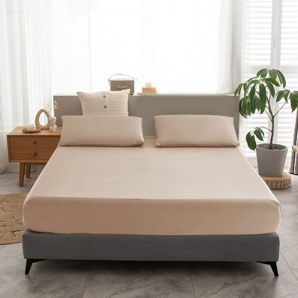 Treeflyheart ボックスシーツ ファミリー・キャメル 吸水速乾 シーツ ベッドカバー 240x200cmのサイズ 着脱簡単 マチ30cm ポリエステル 抗菌・防臭