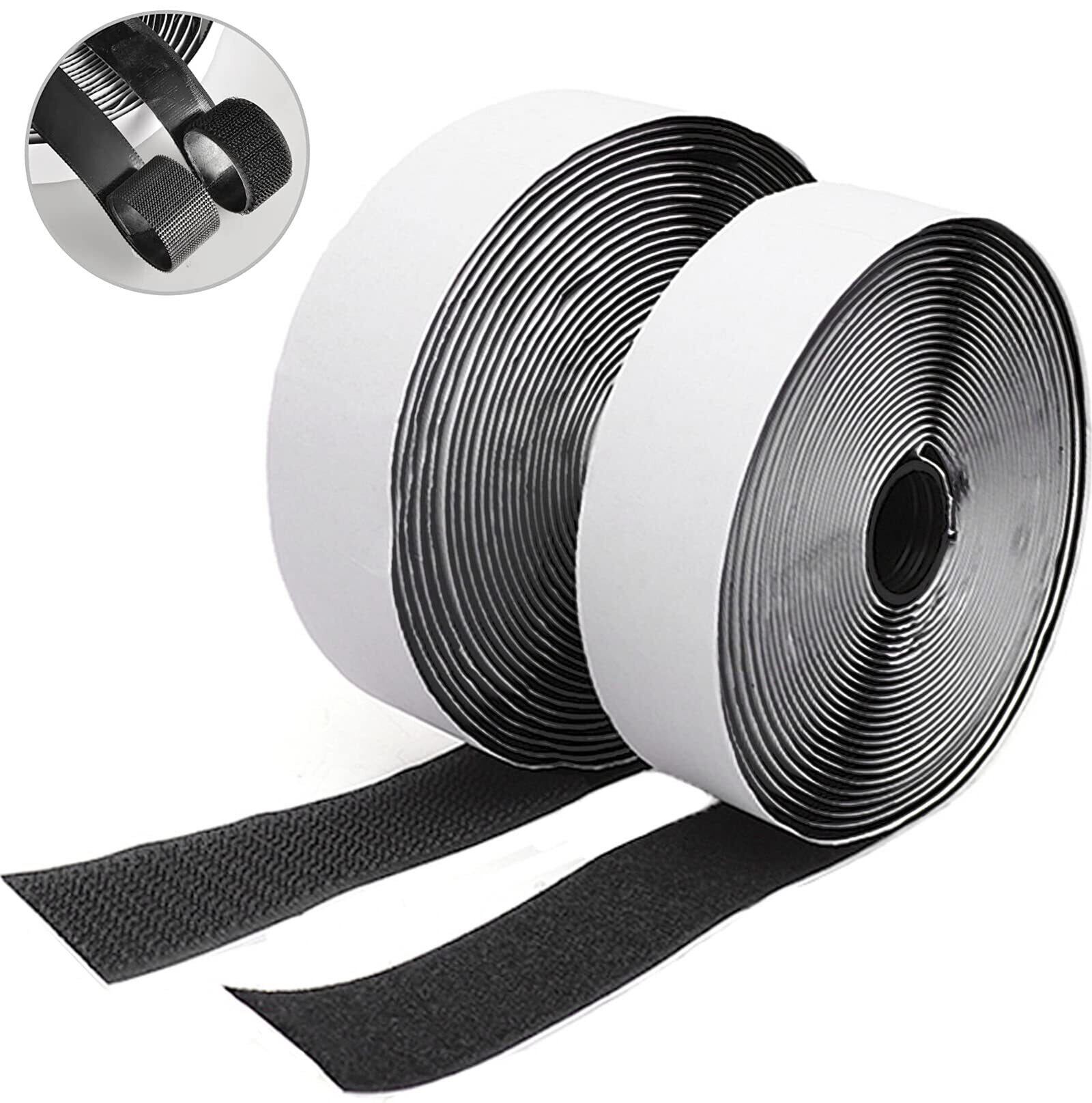 面ファスナー マジックテープ 両面テープ付き (幅2cm 長さ5m) 2点セット オスメスセット 強い粘着力 防水 耐熱 DIY用 網戸用 車用 業務用 家庭用 工業用 (ブラック)