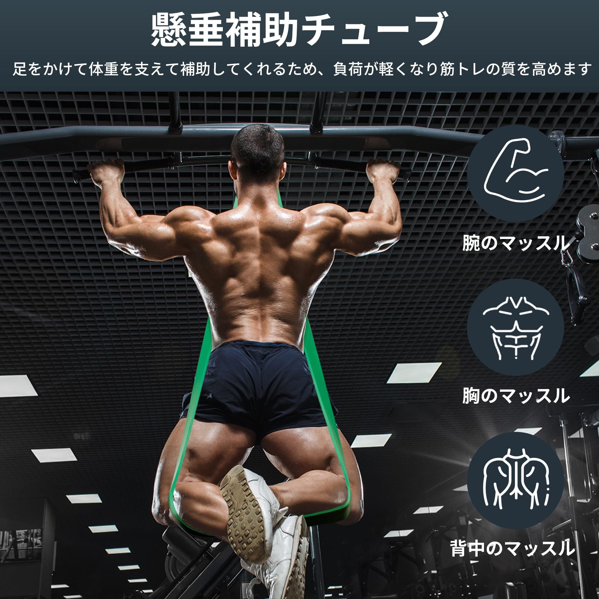 【懸垂補助に使える】:TheFitLifeトレーニングチューブを持っていれば、普段懸垂が不得意な初心者でもゴムチューブで体を支えることで、効果的にトレーニングできます。ご自分にあった負荷力のゴムチューブを選んで懸垂にトレーニングしましょう。【ご注意】懸垂補助に使用する場合はパープルまたはグリーンのチューブをお使いください。レッド、ブラックのチューブは懸垂用ではりませんのでご注意ください。