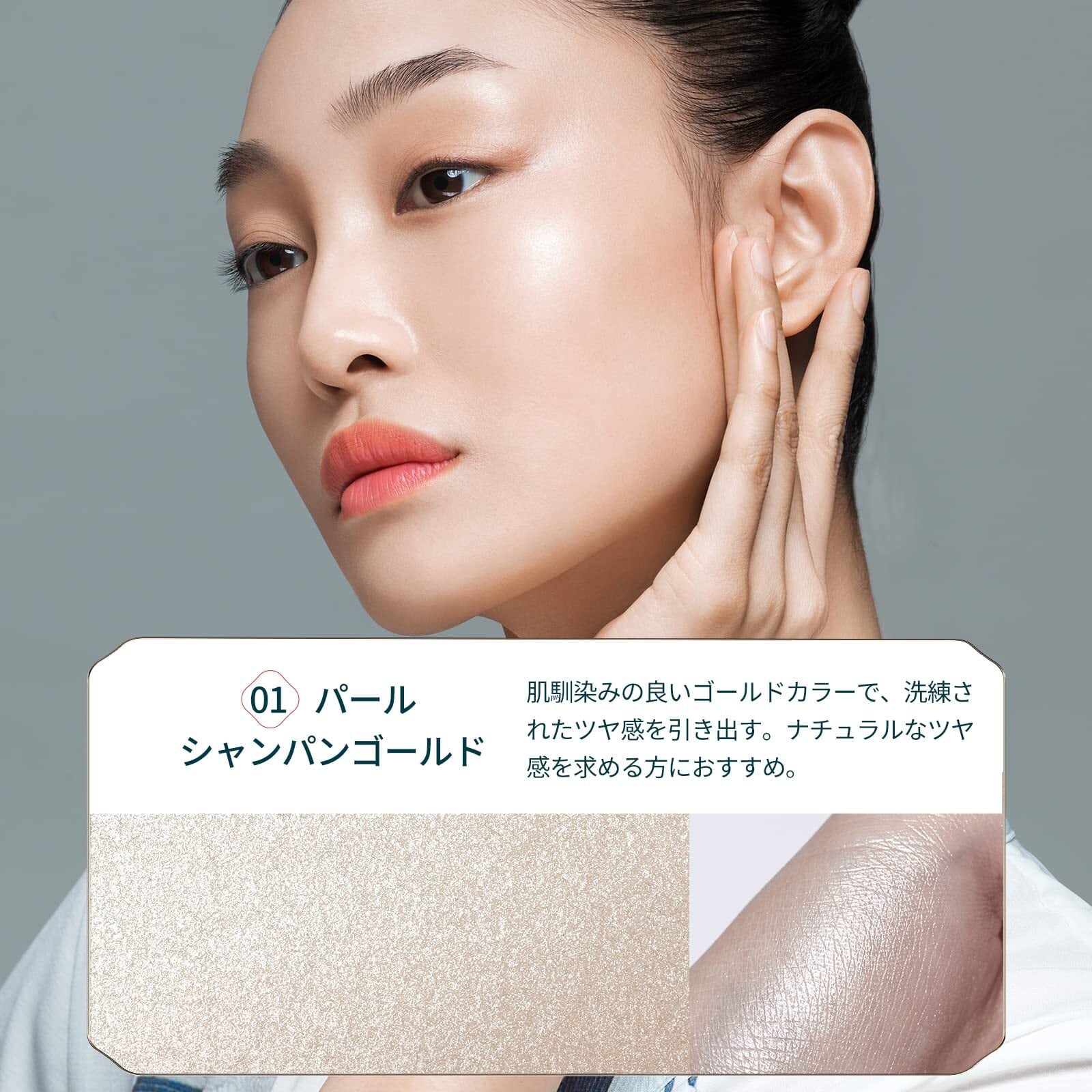 花西子 FLORASIS 双花彫刻 ハイライト 上品なツヤ感 素肌感 ナチュラルメイク 自然な肌色 透明感を演出 扱いやすい 立体感のある顔立ち キラキラ (01 パールシャンパンゴールド)