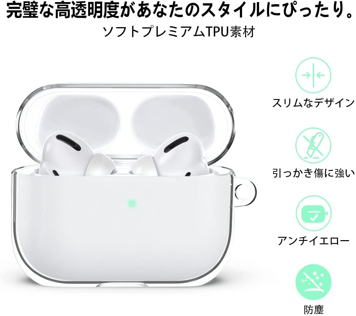 AMAPC for AirPods Pro 2 ケース 2023 TPU素材 AirPods Pro 2 用 ケース ワイヤレス充電可能 軽量 キズ防止 スリム 耐衝撃 防水 防塵 紛失防止 柔らかい AirPods Pro2用 保護カーバ クリア