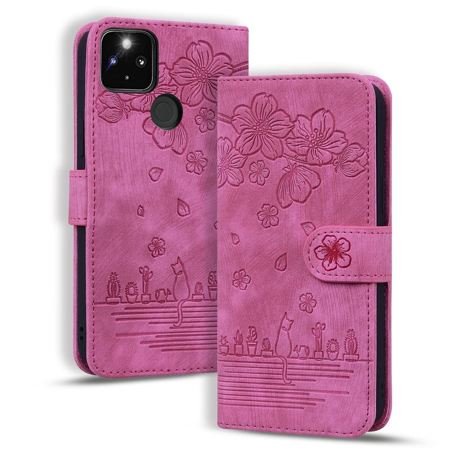 Torske Google Pixel 5 ケース 手帳型 ピクセル5 ケース Pixel5 カバー さくら柄 グーグルぴくせる5 用カバー 油絵デザイン ヴィンテージカラー 快適な質感 財布型 Google Pixel5 スマホケース カード収納あり 使う便利性 全面保護 グーグルピクセル5 ケース Pixel5 ケース Google Pixel5 対応 携帯ケース 6.0インチ ローズレッド