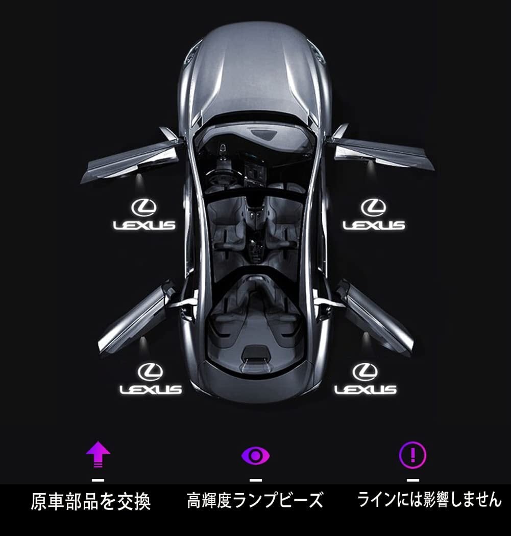 4個セット HD カーテシライト ドアウェルカムライト カーテシランプ レーザーロゴライト LEDロゴ投影 適応 レクサス LS ES IS LX RX GX 車用カーテシ 角度調整機能付き (01-4個セット)