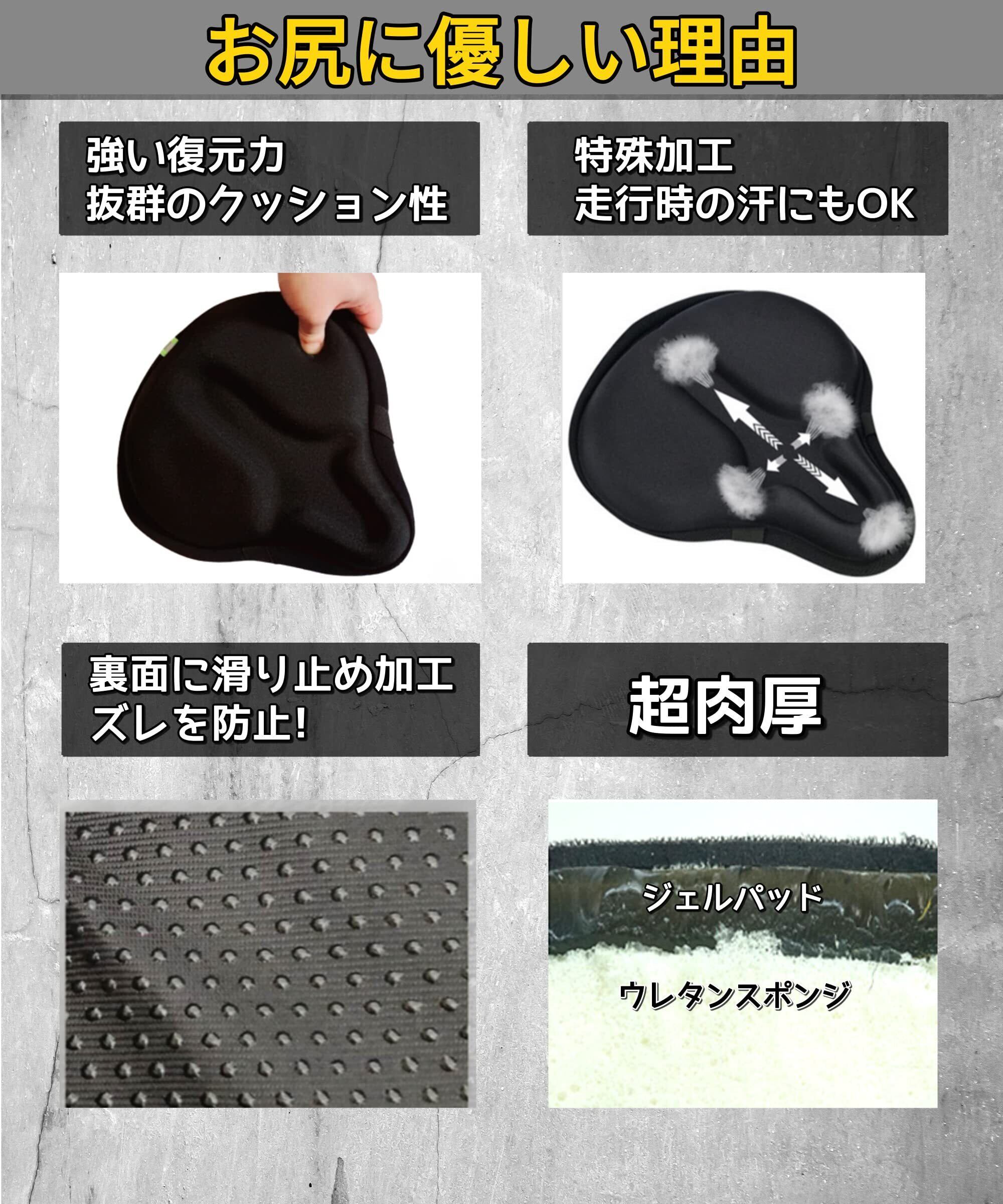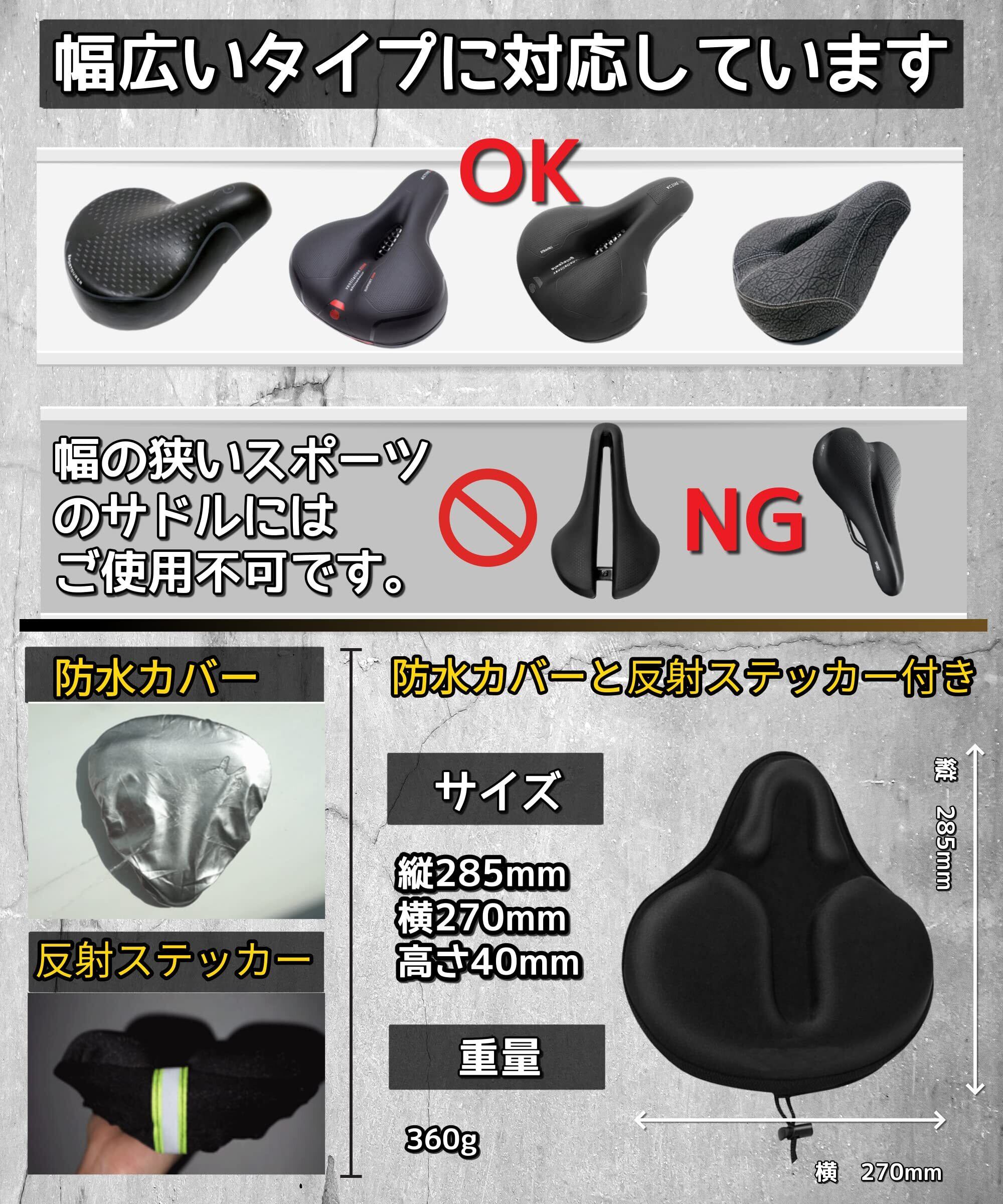 【●使いやすさと安全性】走行時のズレを防止するため、カバーの裏側に滑り止め特殊加工し、快適で使いやすいサドルカバーです。●材質:シリコーンジェル、高密度ウレタン。●防水カバー、反射ステッカー付き。