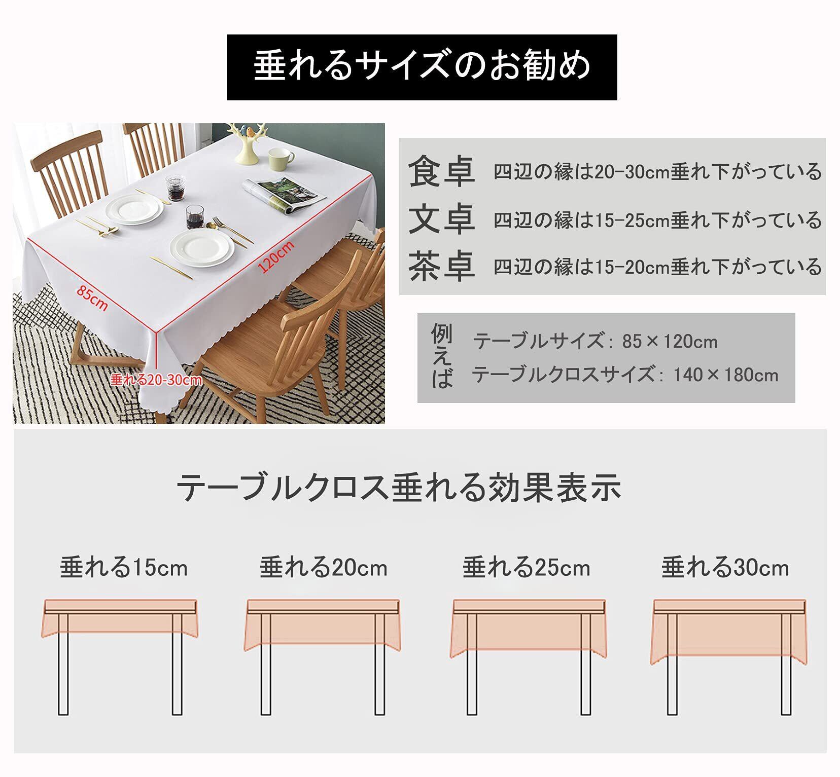 Forhomelife テーブルクロス 白 無地 テーブルカバー シンプル 長方形 135×180cm 洗える ウォッシャブル 洗濯可 速乾 ホワイト 厚手 耐熱