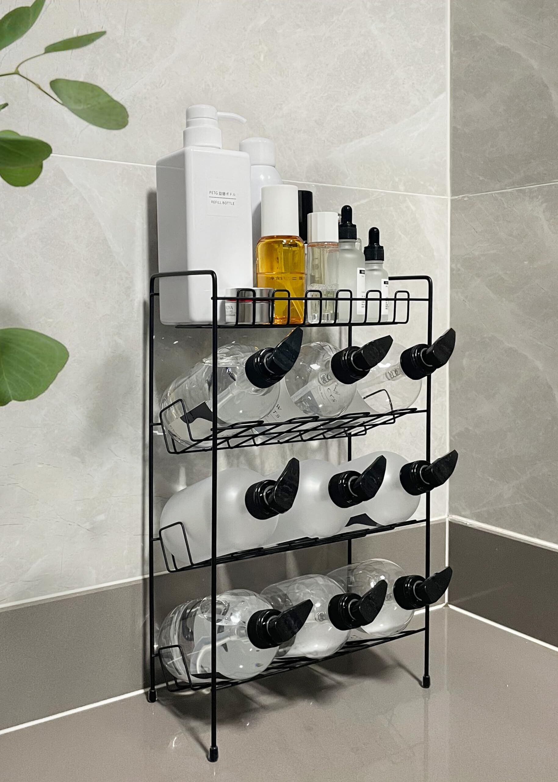 ◆サビに強い素材:ブラックステンレス製で、湿気の多い浴室でもサビに強く、長期間美しい状態を保ちます。 ◆4段構造で効率的に収納:4段の棚が設けられており、シャンプー、コンディショナー、ボディソープなどのボトル類から、洗顔料や小物まで整理整頓できます。 ◆省スペースデザイン:スリムな形状で、浴室の隅にぴったり収まります。限られたスペースでも効率的に収納でき、浴室をすっきりとした印象に保ちます。