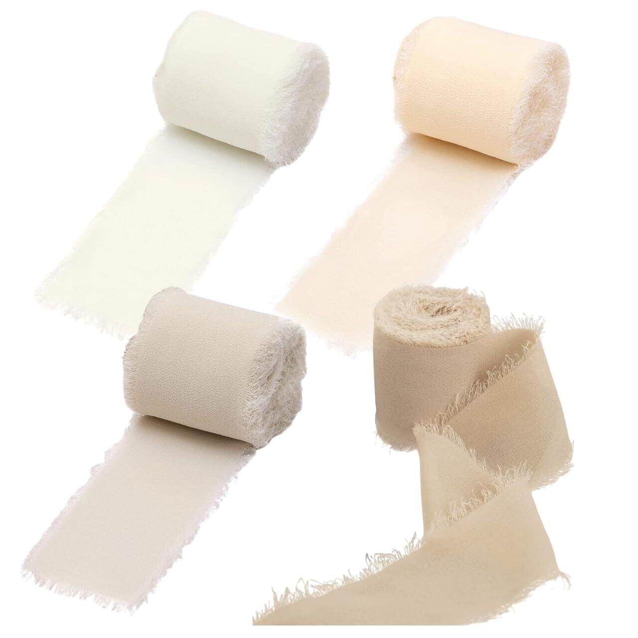 RyuBits リボン シフォン 切りっぱなしリボン ハンドメイド 素材 幅4cm×5m 4色セット