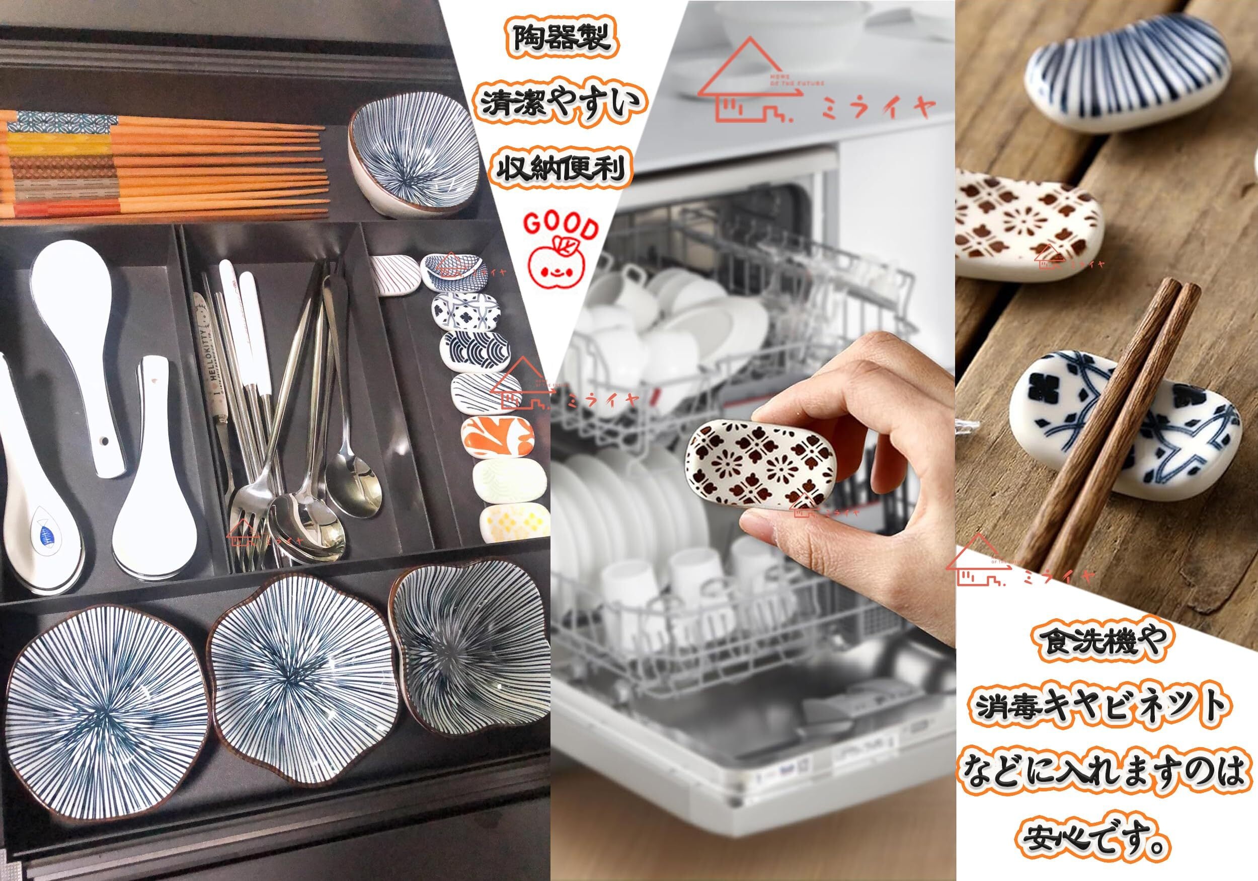 【陶器製で安定感と清潔感あり】:陶器製で安定感があり、ころんと丈夫でしっかり箸を受け止めてくれ、底に滑り止めのデザインがあります。陶器で作ったので、清潔さを保ちやすい。食洗機や消毒キャビネットなどに入れますのは大丈夫です。