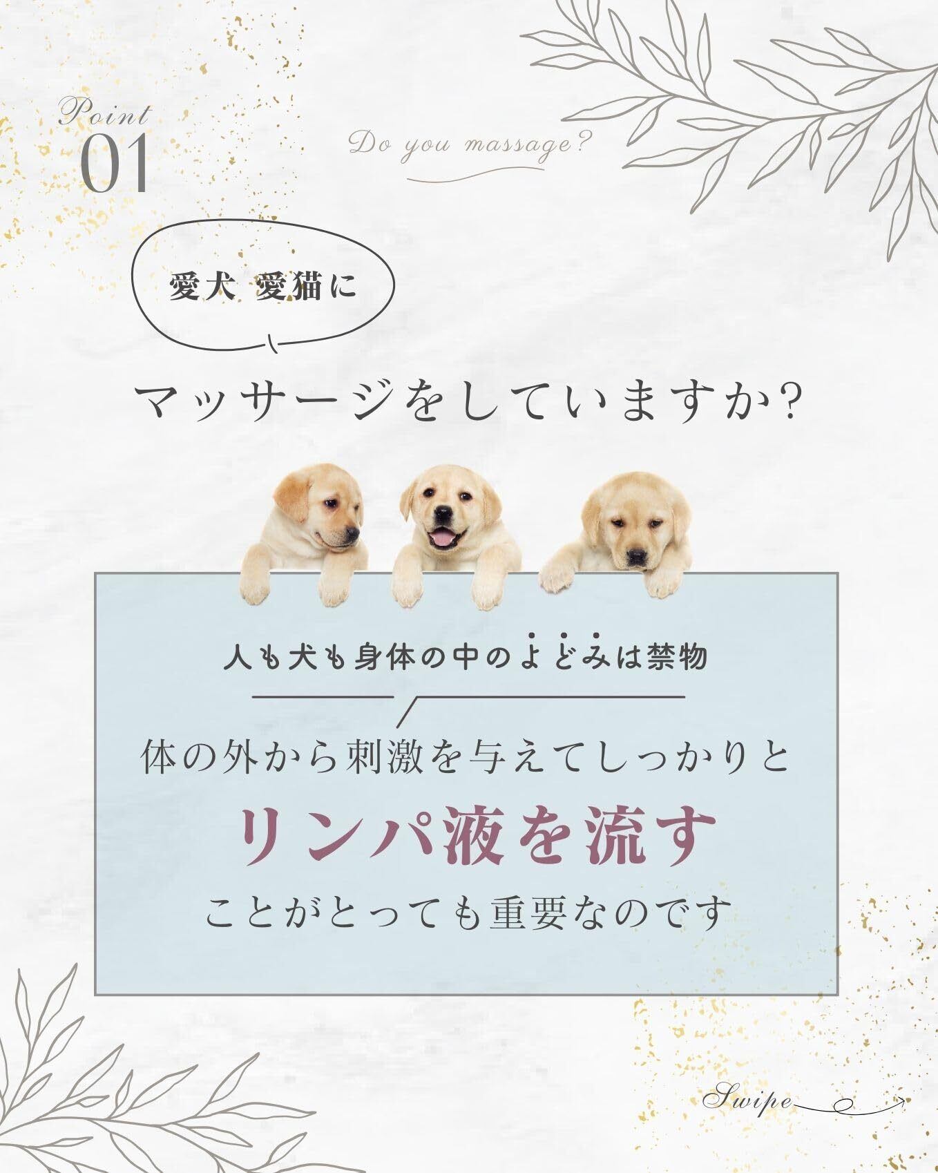 【大切なワンちゃん猫ちゃんのマッサージの重要性】愛犬 愛猫 にマッサージをしていますか?どんなに良いご飯、サプリメントを取り入れても、身体の中がよどんでいるとお体の反応もイマイチです。良いものを取り入れつつ、悪いものをしっかり出す「デトックス」がとっても重要なのです。