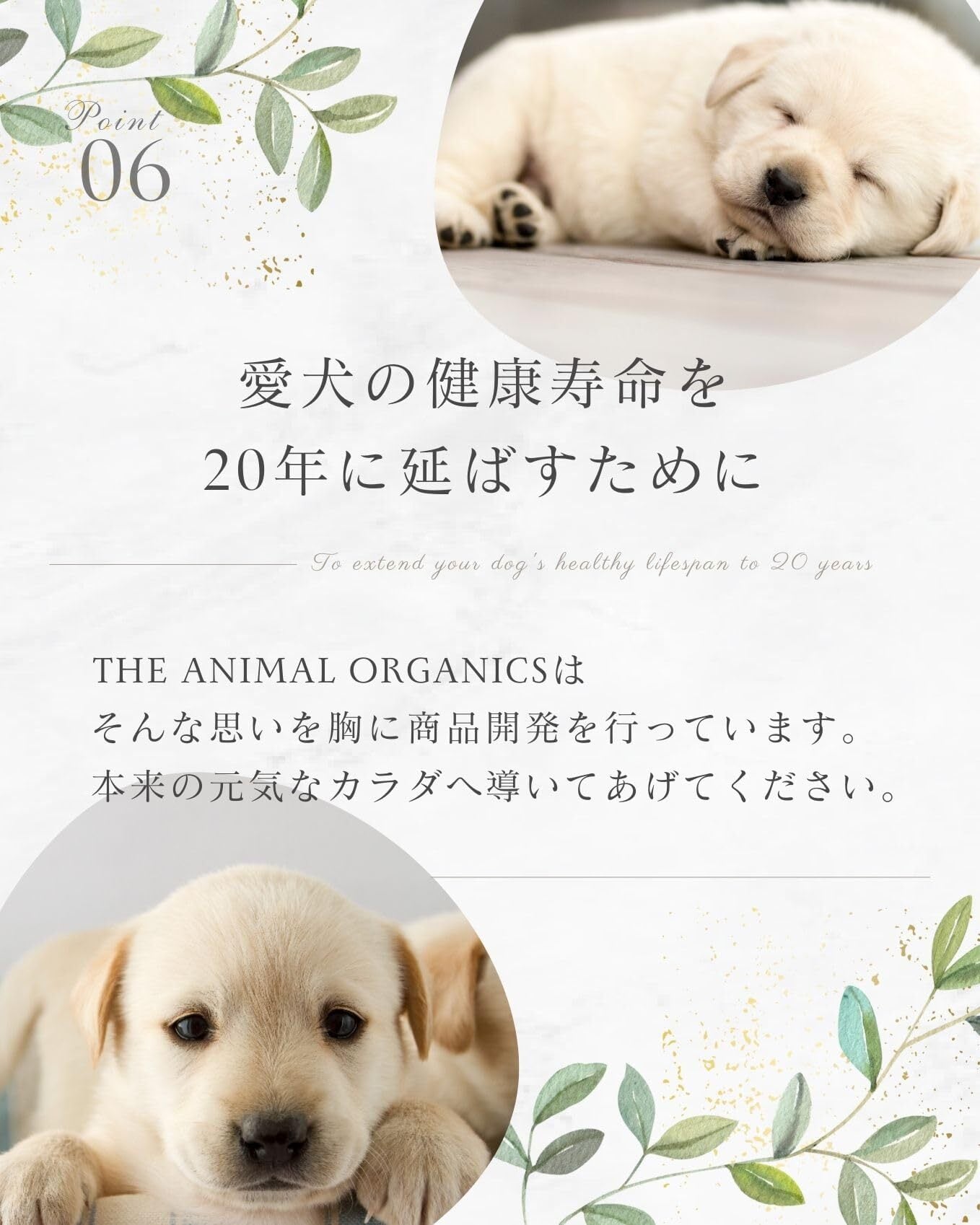 【愛犬の健康寿命を20年に延ばすために】THE ANIMAL ORGANICSはそんな想いを胸に商品開発を行っています。