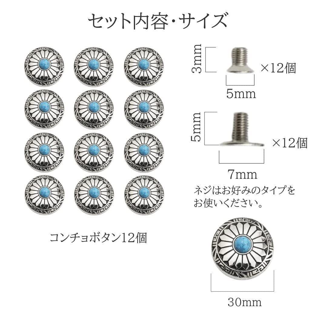 HappyHome コンチョ ボタン 12個セット ターコイズ ネジ式 インディアン フェザー フラワー 30mm レザークラフト 財布 手芸 (Bタイプ)