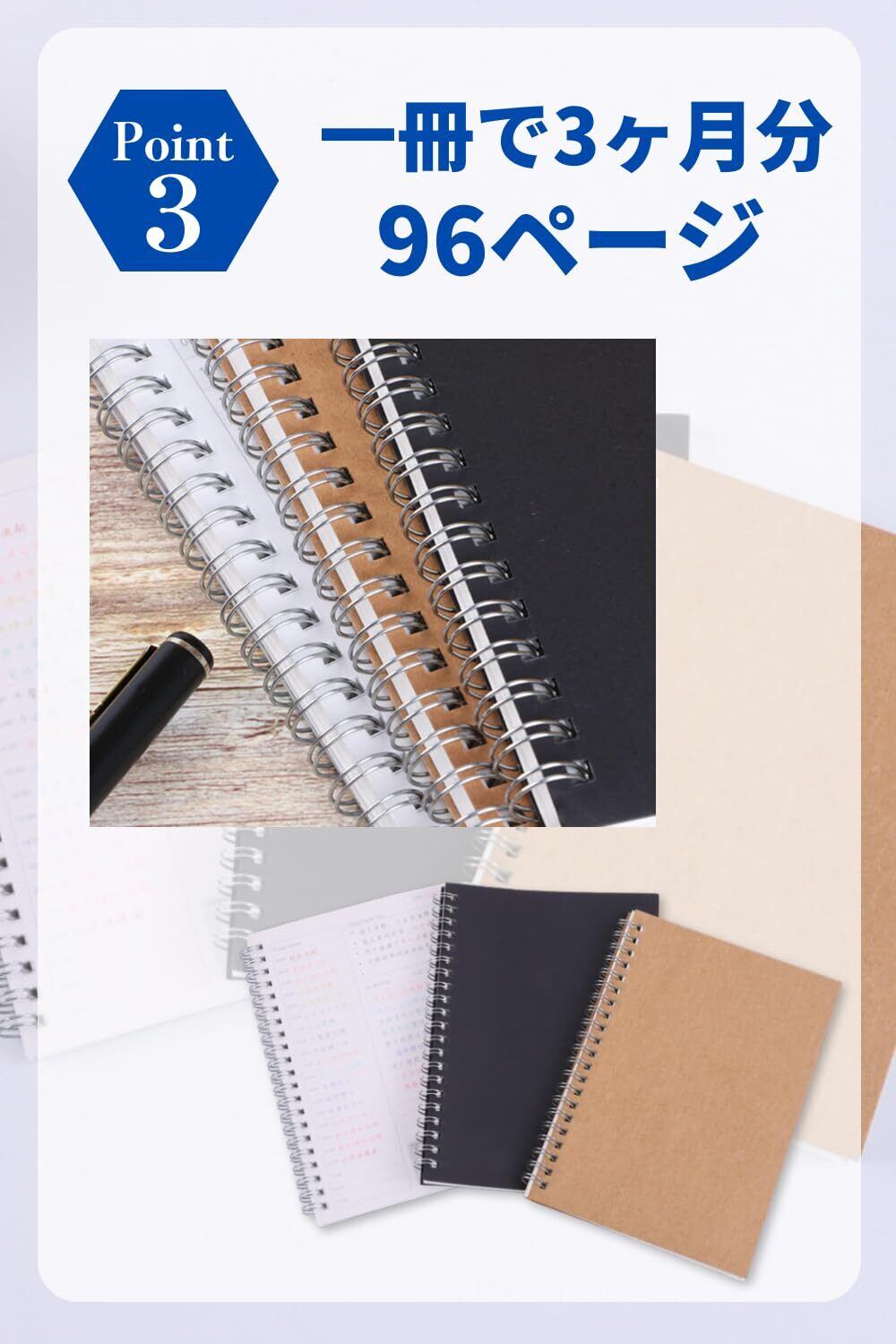 【お得な2個セット】1冊で3ヶ月分(96ページ)書くことができます。カラーも3色あるので、お好きな色をお選びいただけます◎