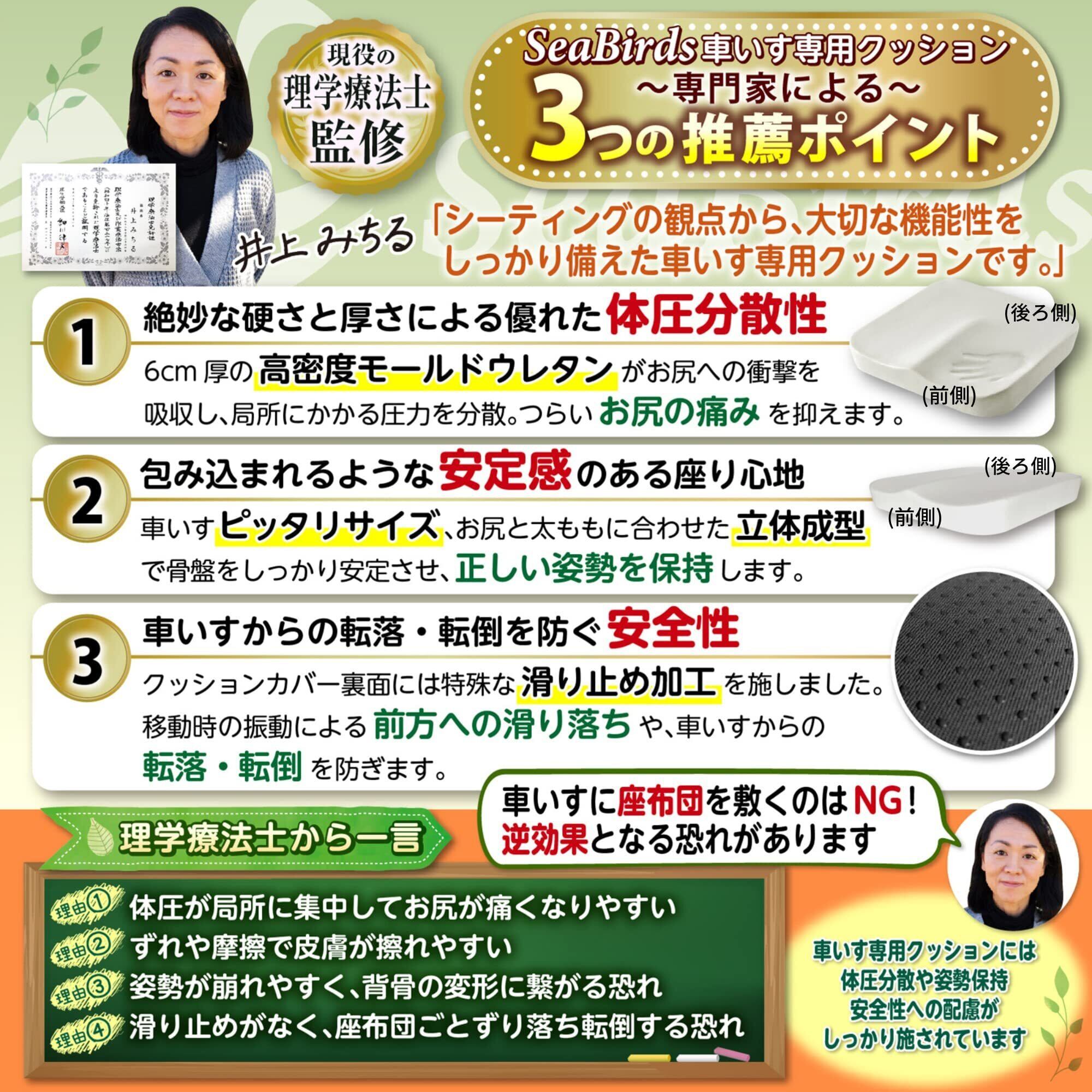 車椅子用 クッション 座布団 【理学療法士監修】 介護 低反発 【 お尻が痛くならない ✕正しい姿勢を保つ】立体成型 洗えるカバー 滑り止め 高密度モールドウレタン 1枚入 SeaBirds 【そらいろ】