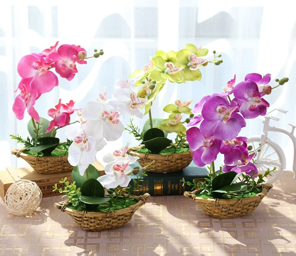 胡蝶蘭 人工観葉植物 光触媒加工 造花 卓上型 船型の鉢植 石鉢インテリア フェイク シルクフラワー 胡蝶蘭 新築祝い お開店祝いギフトに最適 プレゼント 敬老の日 (船鉢, 紫)