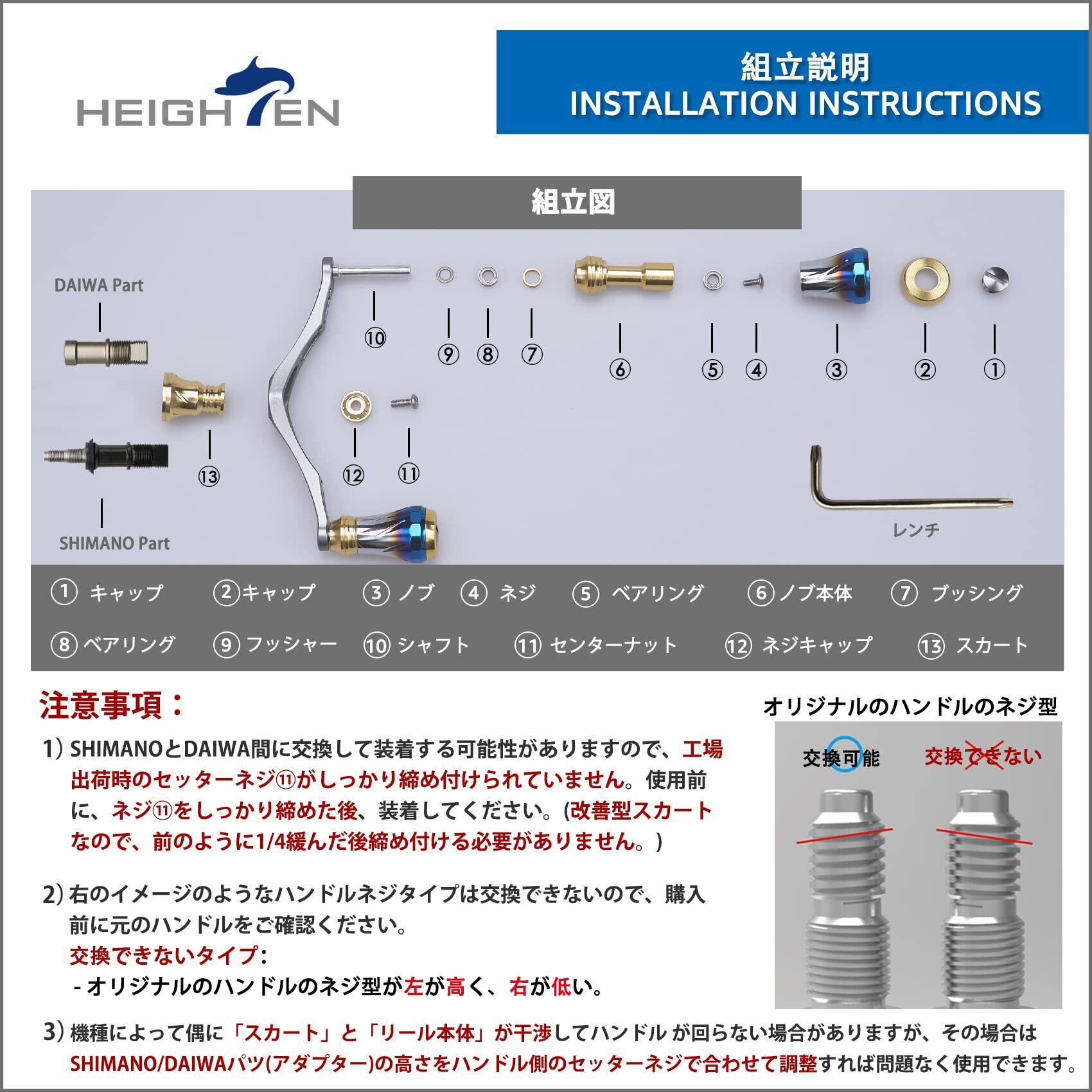 HEIGHTEN 95mm リール ハンドル 8色 シマノ ダイワ 通用 スピニングリール用 70航空アルミ製 Aurora Series (V2.0 - ブラック) (185)