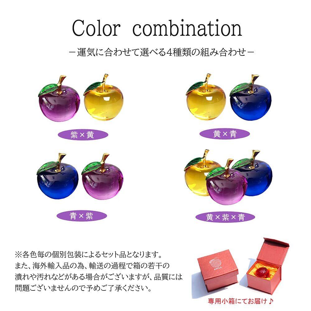 【クローブキューブ】 りんご ガラス オブジェ ペア 3色 セット 風水 インテリア 水晶 開運 瓢箪ストラップ付き (青×紫)