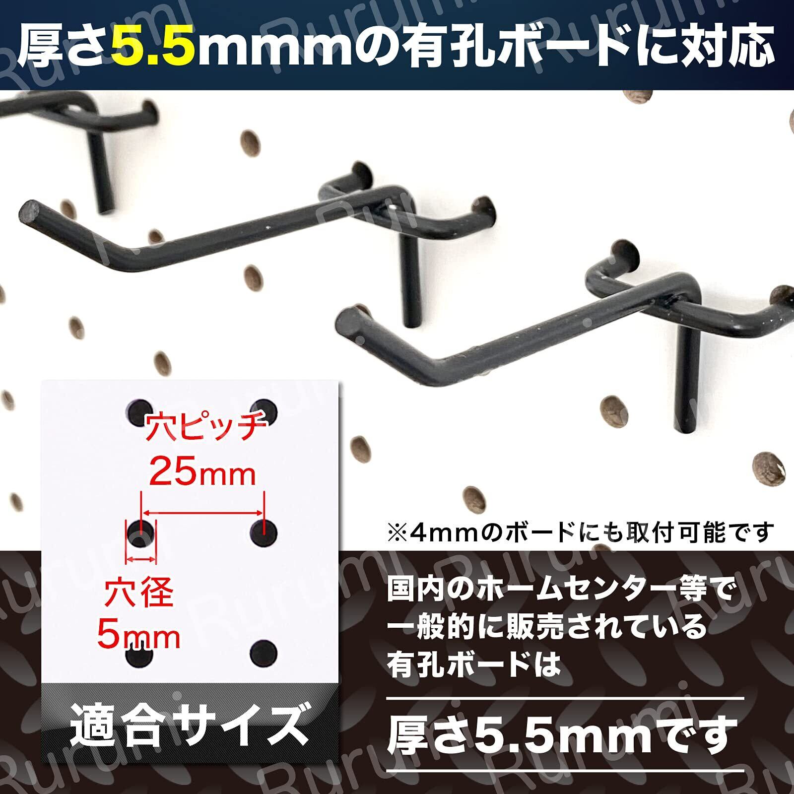 Rurumi アイアン調 7cm 有孔ボード フック セット T型 厚さ 5.5mm ボード 対応 穴 ピッチ 25mm 穴径 5mm 専用 固定 止め 金具 パンチングボード 穴あき ボード ペグボード マットブラック 艶消し ブラック (20本 セット)