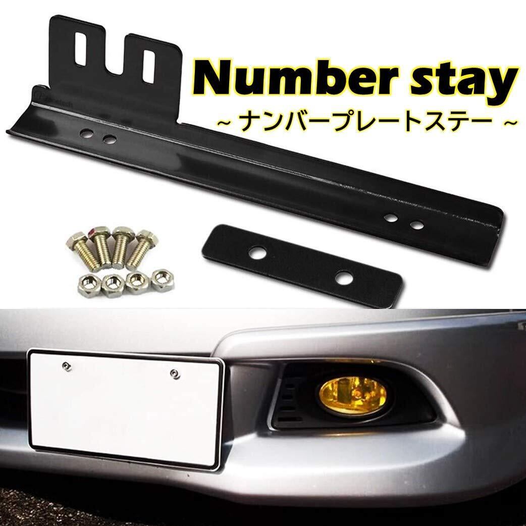 ルボナリエ ナンバーステー 車 ナンバーフレーム ナンバープレート ボルト ステー リロケーター ドレスアップ (ブラック)