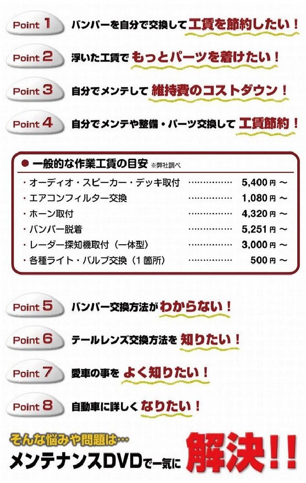 同梱されている内装剥がしハンディリムーバーはDVD内で使用しているものと同じものではございませんが、同等レベルの商品となりますので到着後直ぐにパーツやアクセサリー部品の取り付けなど純正からカスタム改造まで愛車のドレスアップ時などにご利用頂けます。またDVDには収録内容に記載してる項目以外のものは収録されておりませんので内容を十分ご確認の上お買い求め願います。